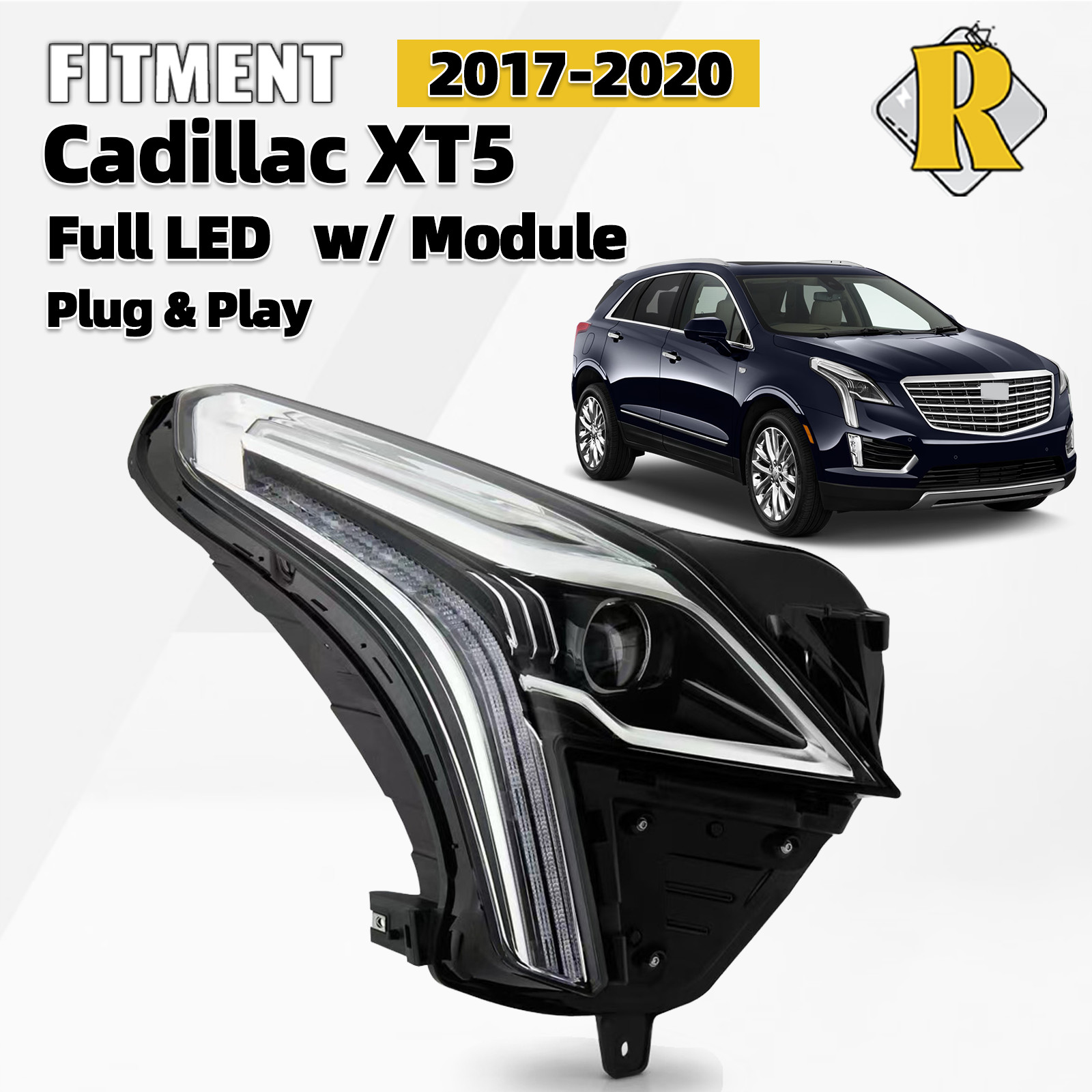 For 2017-2020 Cadillac XT5 FULL LED Projector Headlight with Bulb with Module Right Passenger Side RH Plug & Play Fitment 2020 Cadillac XT5 Luxury, Premium Luxury, Sport 2.0L L4 - Gas, 3.6L V6 - Gas 2019 Cadillac XT5 Base, Luxury, Platinum, Premium Luxury 3.6L V6 - Gas 2018 Cadillac XT5 Base, Luxury, Platinum, Premium Luxury 3.6L V6 - Gas 2017 Cadillac XT5 Base, Luxury, Platinum, Premium Luxury 3.6L V6 - Gas Attention Compatible on Models with Factory LED Headlight Only Not Compatible Models with Factory Halogen Headlight Description This headlight assembly is a direct replacement for your original headlight, ensuring a perfect fit and easy to install. Providing with bright and clear illumination,while the LED daytime running lights add a modern touch to your vehicle. This headlight assembly is DOT certified, meaning it meets or exceeds the standards for quality and safety. Item Specifications OEM:23386131 Interchange Part Number:84826666, 23385176, 23386133, 84167548, 84245985, 84309960, 84648544 Fits Following:2017-2020 Cadillac XT5 Condition:100%