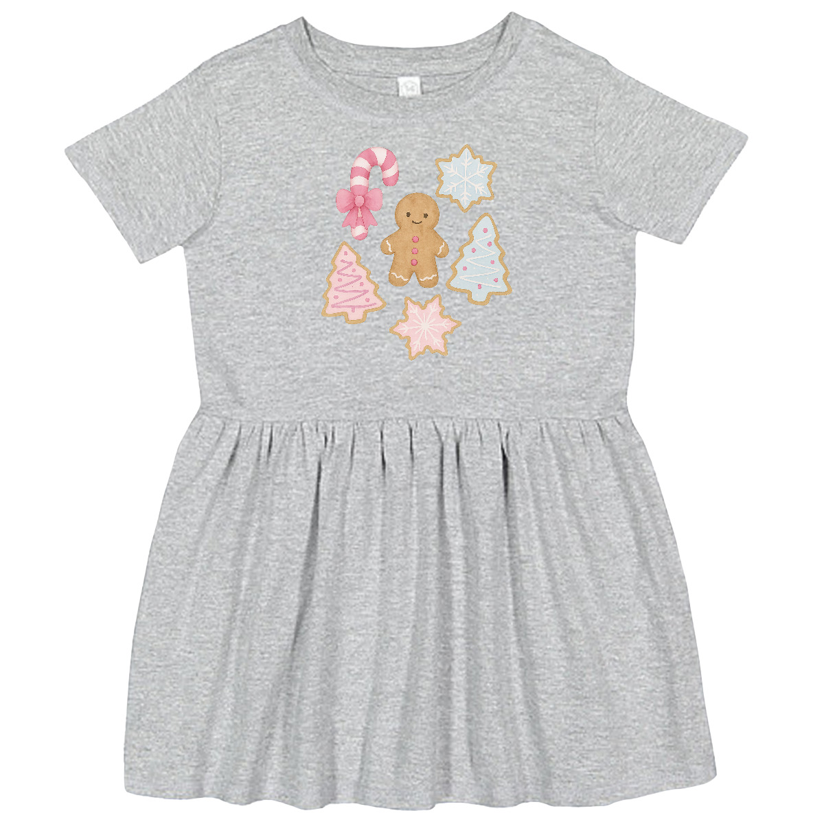 Inktastic Toddler Girls Dress with Gingerbread Cookies & Snowflakes