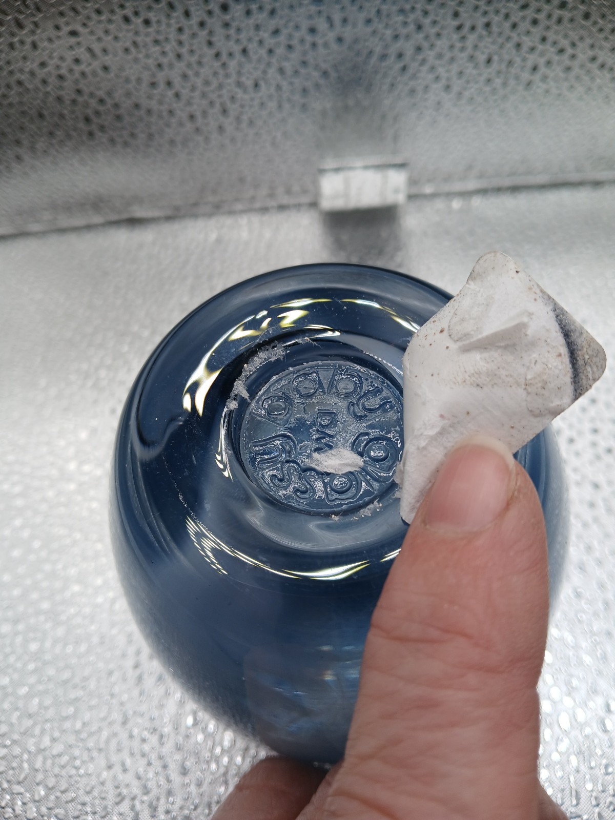 Glassybaby “I See You” Candle Holder, Navy Blue Silver Recessed Wings