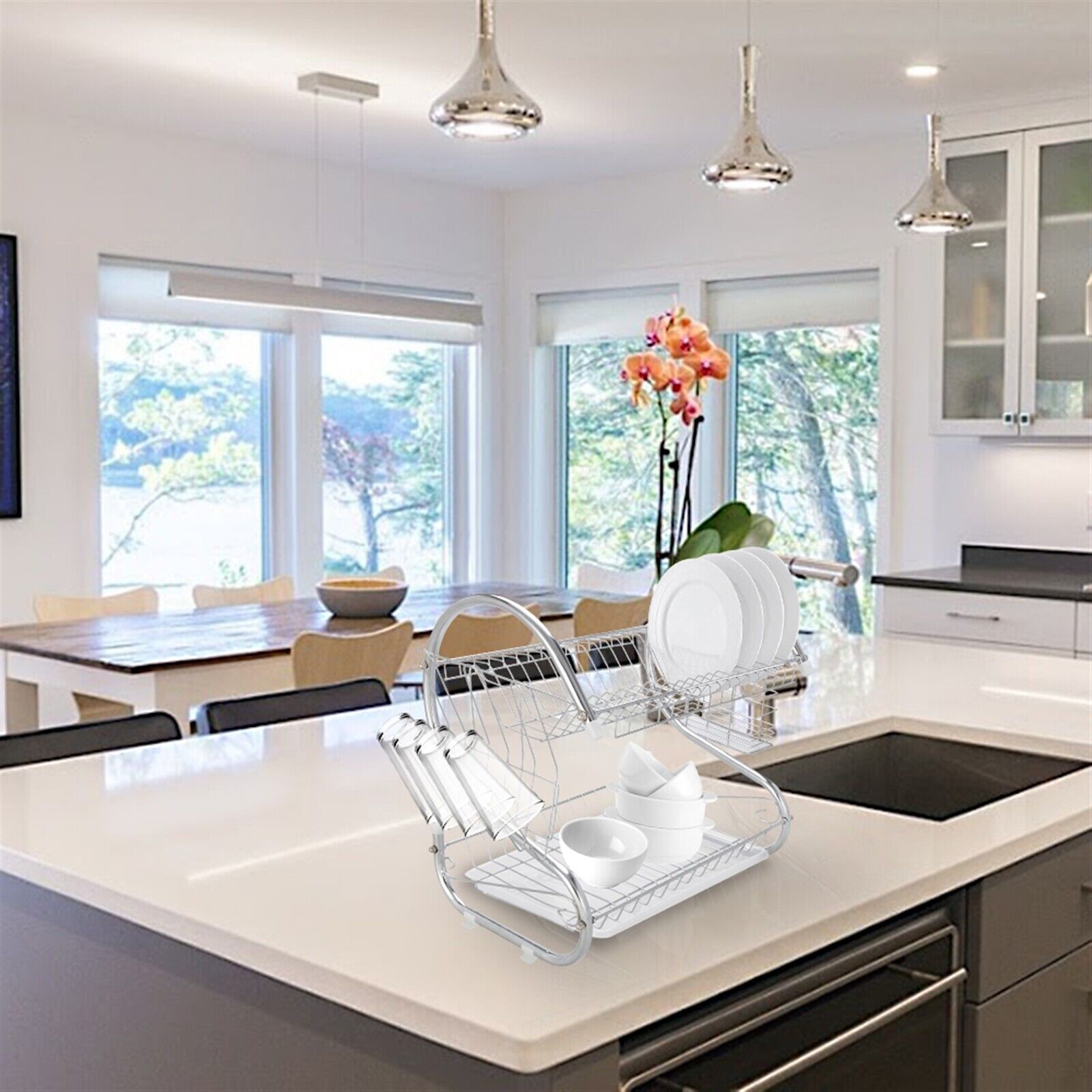 Introductions:Dish drainer is a commonly used item among all households. With it, you will make full use of space in your house. Our Multifunctional S-shaped Dual Layers Bowls & Dishes & Chopsticks & Spoons Collection Shelf Dish Drainer is highly recommended for you. With meticulously plating surface process, this dish drainer is in sleek appearance and polishing gloss. Made of high-grade material, it is of great durability and reliability to sustain bowls, spoons, chopsticks and dishes etc. It has two layers for well classifying and easy reaching. Would you like to buy one for your own? Features:1. S-shaped design, unique and chic2. Electric plate, special surface treatment, polishing gloss and sleek surface3. Good durability for sustaining bowls, spoons, chopsticks and dishes well4. Designed into dual layers for clear organization5. Save room for making your space more neat6. A must-have for each household Specifications:1. Material: Metal2. Color: Silver3. Number of Plies: 2-Layer4. Weight: 34.99oz / 992g5. Dimensions: (15.74 x 14.57 x 9.84)" / (40 x 37 x 25)cm(L x W x H) Package Includes:1 x 2-Layer Dish Drainer On Sep 9, 2024 at 21:43:48 PDT, seller added the following information: