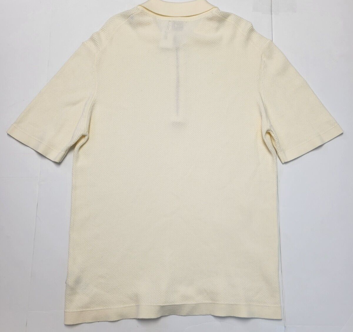 Description: Knit Cotton Zip Collared Short Sleeve Polo Sweater Brand: NNO7 Color: Ivory Size: Men's 2XL Condition: New with Tags, $185 Retail Please feel free to message for any other information needed. Discounts always available when purchasing multiple items. Thank you.