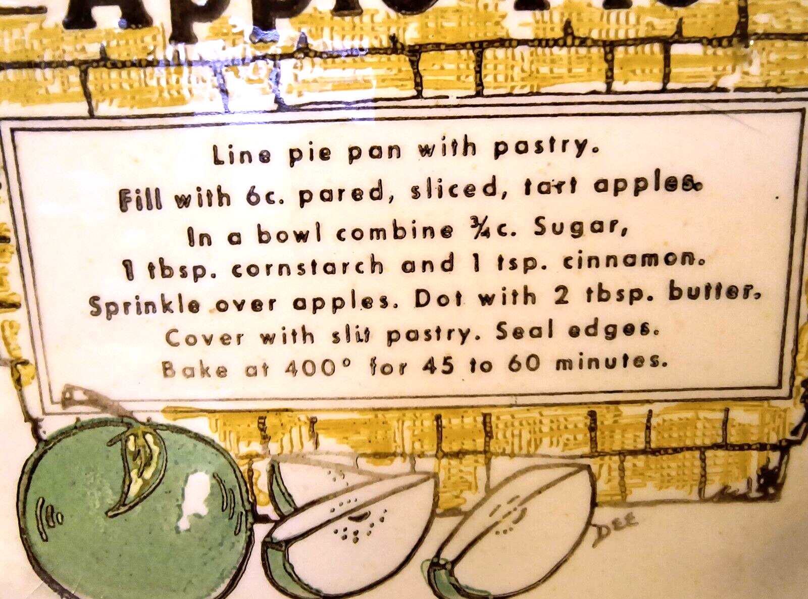 Vintage Apple Pie Recipe Pie Plate, Stoneware, EUC Specs