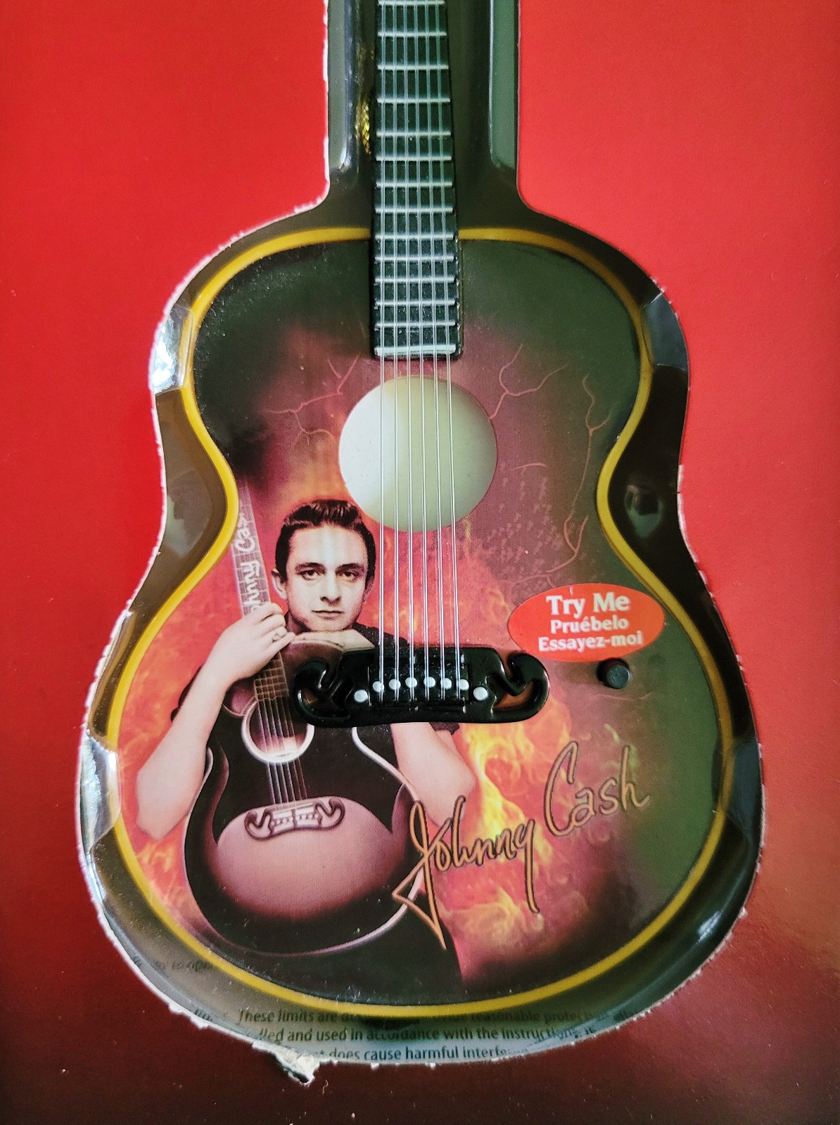 For sale is this stringed holiday ornament from Santa's Best. This Johnny Cash themed guitar ornament plays a verse of his song Ring of Fire when a button is pressed. Another feature of the ornament is an LED that illuminates the sound hole of the guitar and is timed to the beats of the song.Requires 3 alkaline AAA sized batteries (included) to operate. Guitar measures about 7.5" in length and 3" at its widest. Item is new in packaging. Box has some degree of wear but it is minimal. Please refer to listing photos for close up details. All orders ship same or next day. Shipping costs are calculated based on package weight, size, and buyer location. No upcharge is applied for supplies or handling. For combined orders: Use the "Request total from seller" option on the checkout page to receive an invoice with updated shipping charges. Buyers who do not use this option will receive a refund with the difference in shipping costs once their order ships. International orders: All international orders are shipped using Ebay's International Shipping Program. Once an order reaches their hub, Ebay assumes all responsibility for final shipping and delivery.