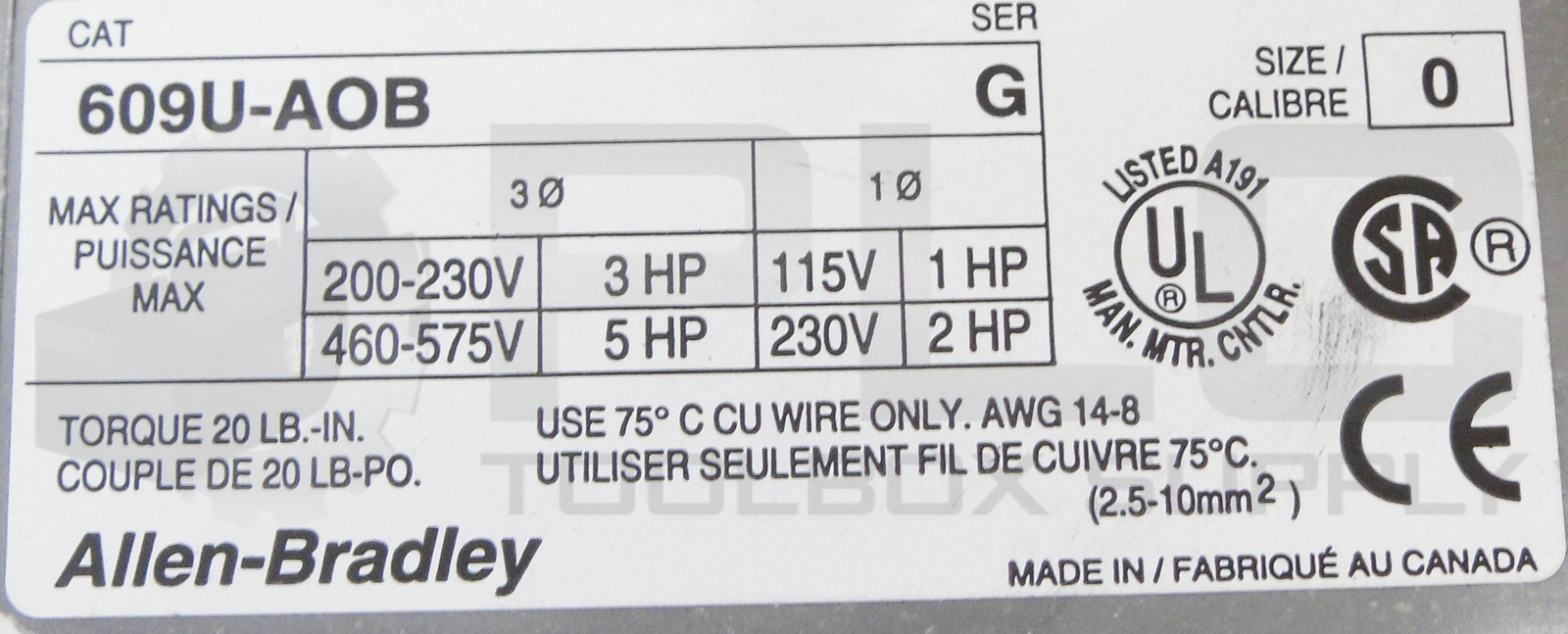 h2 h3.bar h2 h3.bar a p big , a body.wp-admin ul body.wp-admin ul li @media (min-width: 320px) } @media (min-width: 481px) a a img.wpl_thumb } @media (min-width: 641px) a a img.wpl_thumb } img img input[name='thumb_switch'] label span label img input[name='thumb_switch']:checked+label input ~ input[name='thumb_switch'] ~ input[name='thumb_switch']:checked + label + + label + @media (max-width: 1210px) and (min-width: 1140px) } @media(min-width:992px) and (max-width:1140px) } @media (max-width: 992px) } @media (max-width: 939px) } @media(width: 768px) label span label img } @media(max-width: 767px) ,.wplister-gallery img label span label img } M-F: 8:30am - 4:30pm 4031 Keegan Rd. Emmett, MI 48022 We BUY Excess Inventory!!!! See below. NEW ALLEN BRADLEY 609U-AOB /G MANUAL STARTER SWITCH SIZE 0 3PH 440-480V 50/60HZ 609U-A0B W/ MA273 COIL NSMP Location: 3292 304 Shipping Shipping: We ship utilizing the following services: United States Postal Service (USPS), United Postal Service (UPS), DHL Worldwide, and Federal Express (FedEx). If you would like to use your shipping account number please contact us with that information. If you have a rush shipping order please contact us and we will do our very best to meet your needs. We do our very best to ship all items on the day the payment has cleared. However all items will ship within 1-3 business days. Shipping International:(PLEASE CONTACT US FOR THE MOST UPDATED INTERNATIONAL SHIPPING COST.) Our preferred method of International Shipping is via USPS Priority or Express Mail International as it is the most cost effective, and includes a tracking number. If you would like us to use a different method of international shipping, please contact us and we will let you know the cost of the requested service. Please note that items shipped outside of the United States may incur brokerage charges or customs fees. As a customer you are responsible for these charges. Local Pickup: If you would like to schedule an appointment to inspect an item, or to pick it up, please contact us directly. Payment We accept the following payment methods: Credit Cards Paypal Bank wires Cash Please contact us if you have any questions. Service Terms & Conditions: We would like to thank you for shopping with PLC Toolbox Supply! Please read all of our terms & conditions before bidding / buying to ensure the best possible experience! Please contact us with any questions. Emergency: We understand that you may have an emergency and you need an item after business hours or rush delivery. We will do our very best to work with you to meet your demands. Please contact us and we will respond as soon as possible with expedited solutions and costs. Returns: Contact us using ebay messages. PLC Toolbox Supply only sells new surplus items or used items that were pulled from known working machinery. If an item fails to work because it is defective, the defective item must be returned within 30 days. After we receive the item back at our facility, we will confirm that the item is indeed ours and defective. After we make our confirmations then we will replace the defective item with an equivalent item. If a replacement is not available, PLC Toolbox Supply will refund the cost of the item. PLC Toolbox Supply will not be responsible for resulting damage to items or components caused by either internal or external equipment or shorted connections. Any claim(s) for a defective item must be handled within eBay 30 day return policy. Problems / Issues: If you have a problem, we ask that you please contact us before leaving neutral or negative feedback on eBay so we have the opportunity to work out a solution together. We sincerely value our customers and your 100% satisfaction is very important to us! Sell Us Your Excess Inventory We buy current and obsolete industrial automation supplies, and programmable logic controls. Please contact us.
