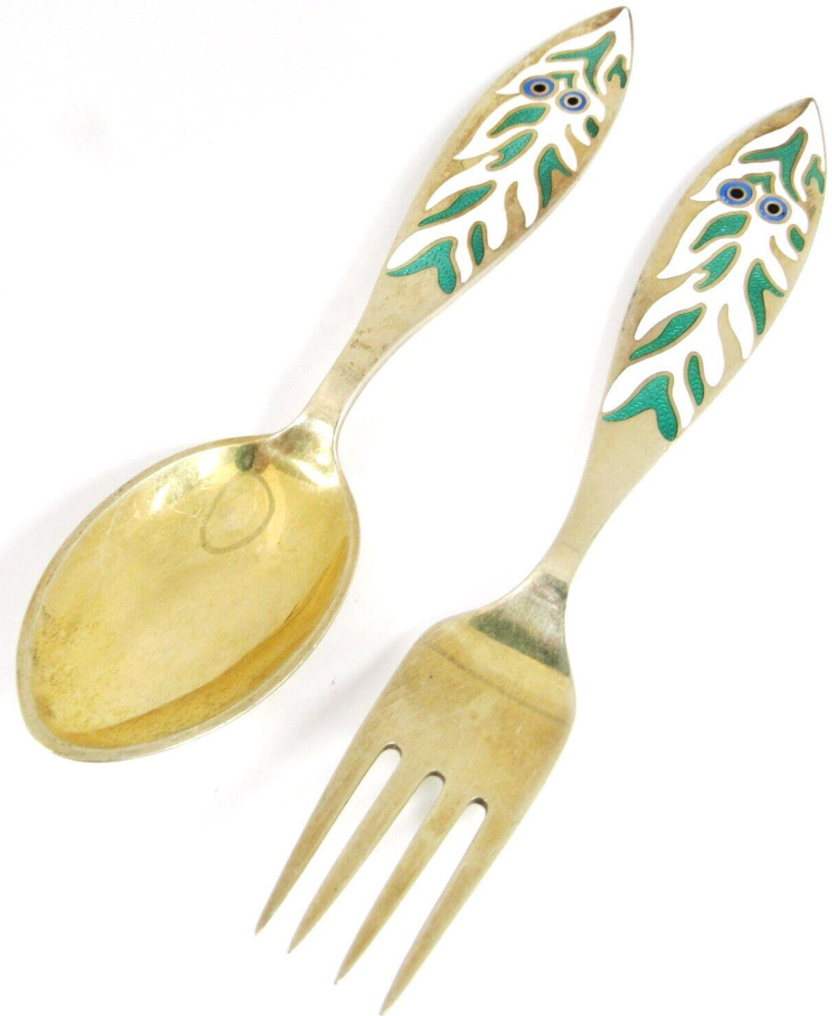 Sterling Silver A. Michelsen Denmark Gold Wash Enamel Souvenir Spoon + Fork Set Specs