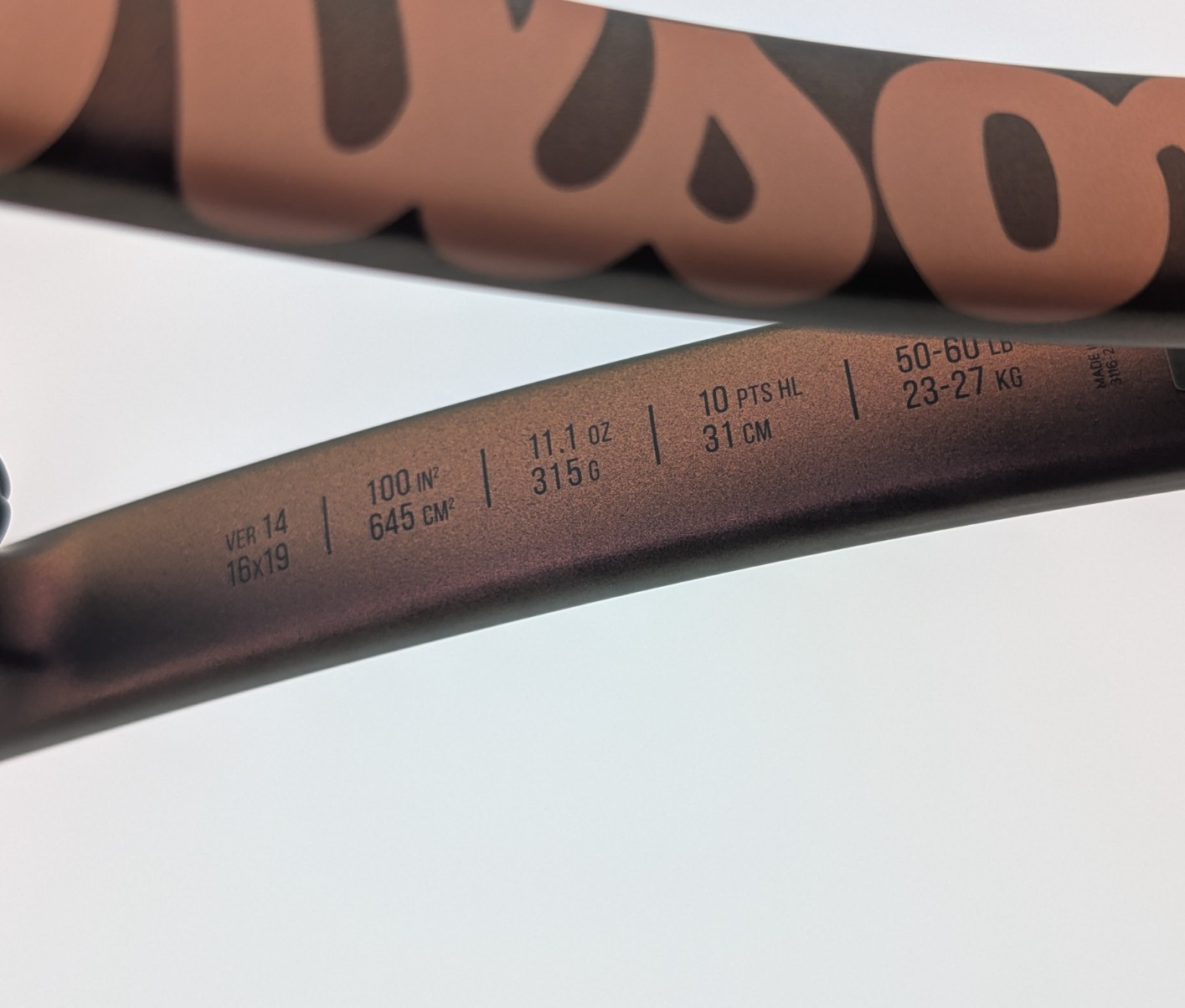 New Wilson Pro Staff X v14 Tennis Racquet unstrung 315g Grip 4 3/8”Head Size: 100 sq. inWeight: Strung - 11.7 oz / 332 g Unstrung - 11.1 oz / 315 gFlex: 66String Pattern: 16 Mains / 19 CrossesSwing weight: 323