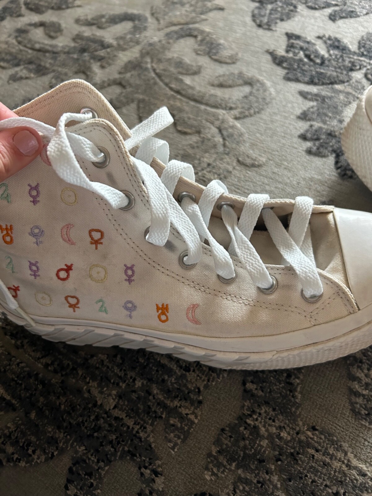 Women Converse Chuck Taylor AS 2X Lift Mystic Symbols. Great used condition with some staining where shoe laces laid. Also some staining on shoes shown in pictures. Please use pictures to shown condition. Size 10