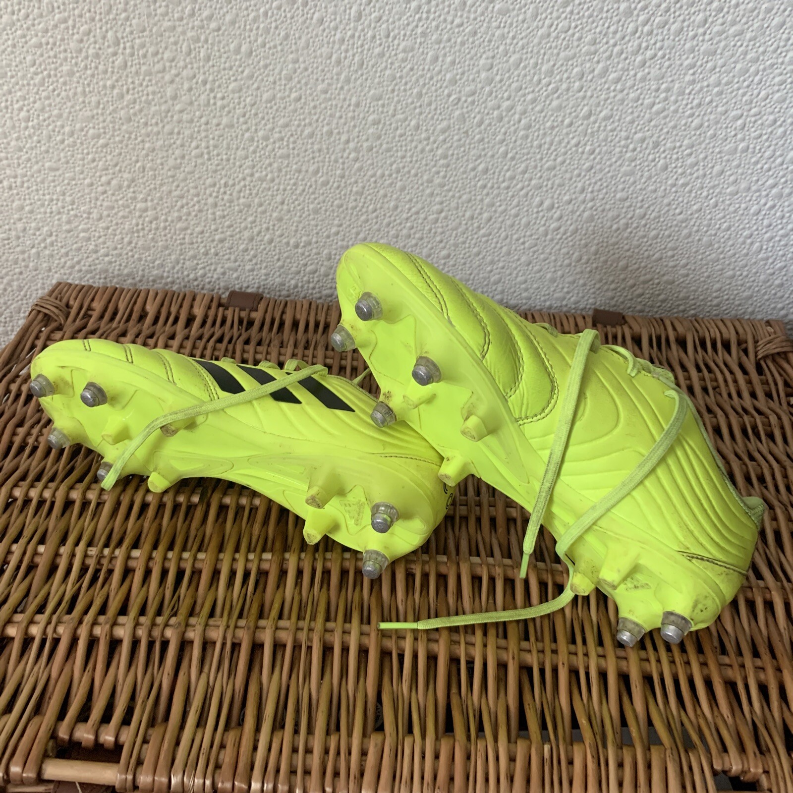 Adidas Copa Gloro 19.3 men’s football boots in neon yellow, size UK 6 (model EE8141). This pair is pre-owned, so expect signs of prior wear; check the listing for details on exact condition, tread, and any cosmetic marks. Ideal for players looking for a replacement pair or a budget-friendly option. Free shipping is included, and the item will be packed for safe delivery. Check the listing for details on what’s included in the sale and any additional photos or notes.