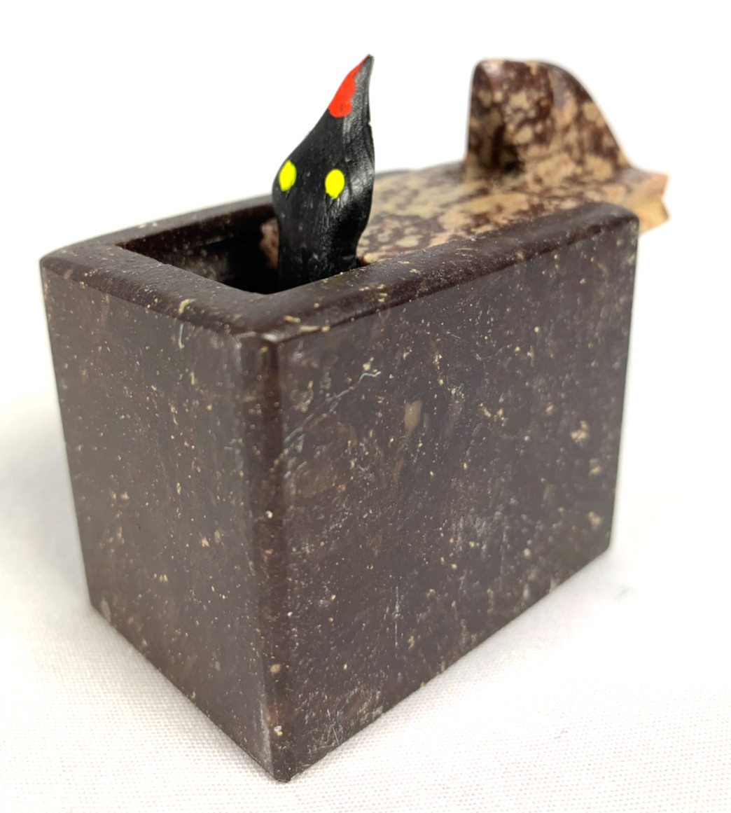 This Chinese soapstone trick box features an “Awakened Snake” hand-carved design and is offered as a collectible piece. It is listed in very good condition. Free shipping is included with the purchase. Check the listing for details on dimensions, any maker markings, and how the trick mechanism operates. Review the photos and description to confirm the exact item you will receive and to note any minor signs of age or handling typical of pre-owned collectibles.