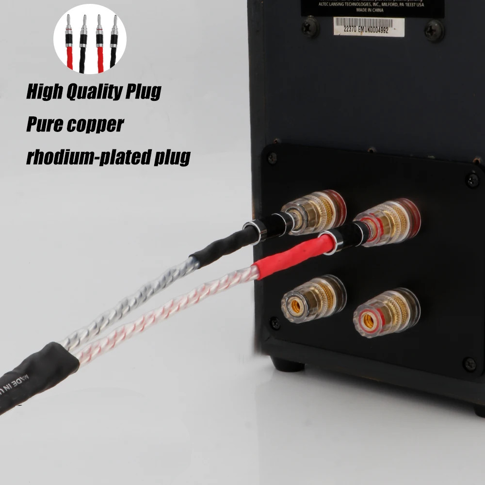 Pair 7N OCC Silver Plated HiFi Audio Speaker Cable with Banana / Spade Connector