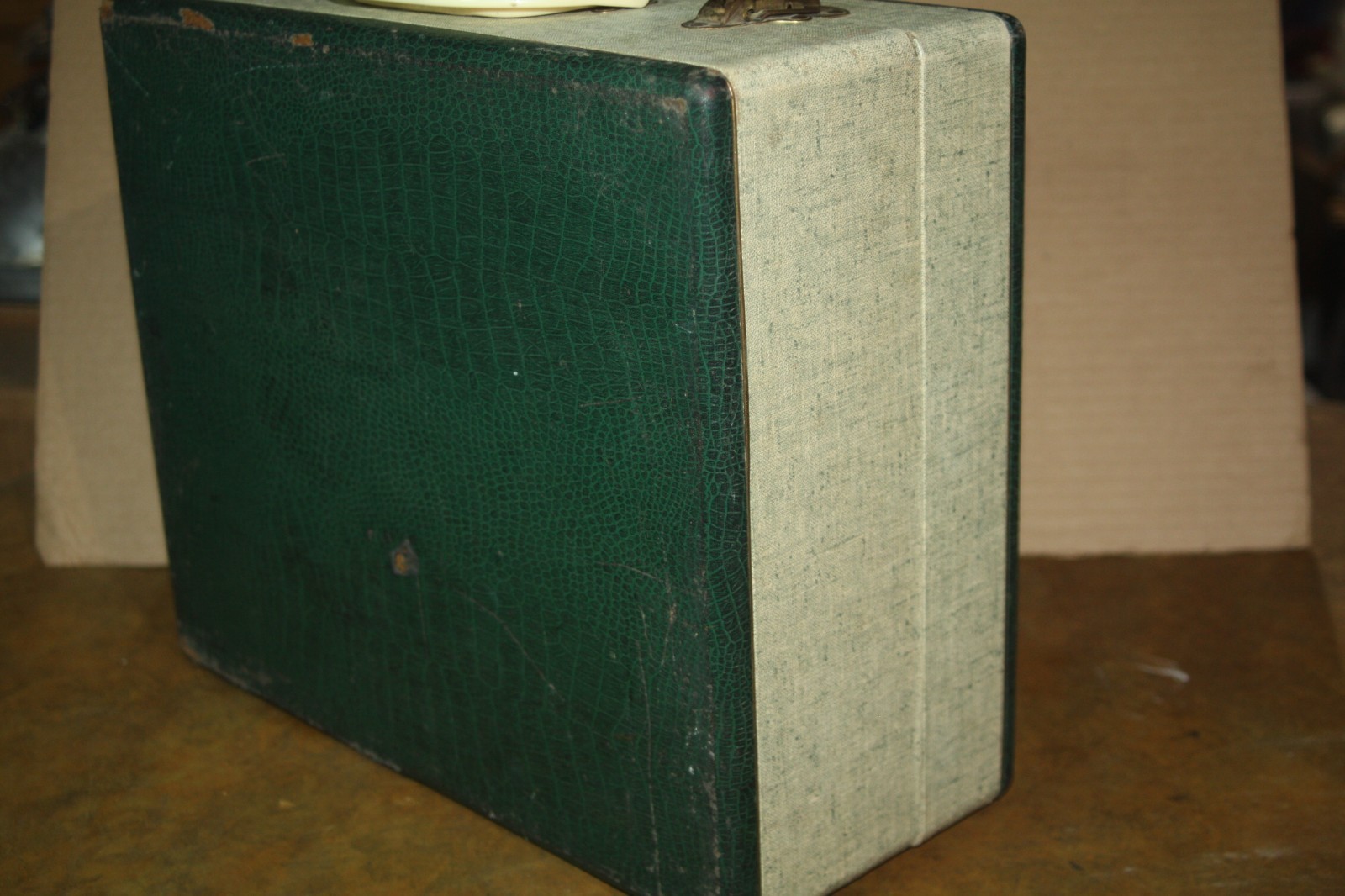 Vintage 1950's Wards Airline Model 35Gaa-946A 3 speed portable record player. Powers on and works in all 3 speeds - has a steady volume hum - will play a record but the hum overpowers the volume of the music. Cosmetically nice - case has faux alligator finish on top and bottom. Measures approx. 13 1/2" by 12" by 6" tall. Free shipping to lower 48