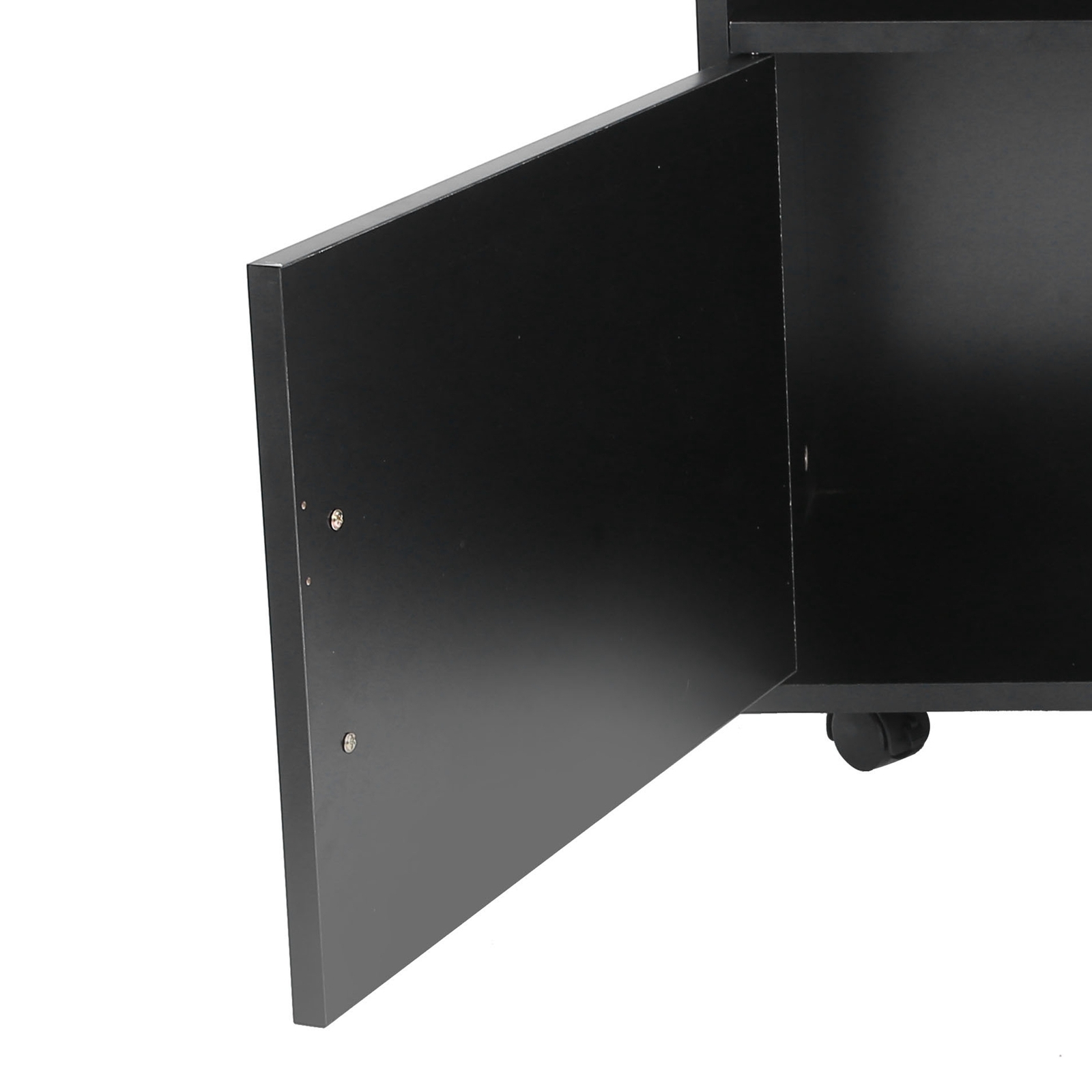 img ; Feature:1. File cabinet, a rolling shelf for storing documents or writing utensils in the office or study room.2. Place the printer on top, and compartments for copy paper, pens, hole punch and much more.3. Office cabinet with 1 open compartment and 2 cabinet compartments, shelf can be adjusted to 3 heights.4. Selected high‑quality MDF materials, sturdy and , wear‑resistant, long‑term use.5. Easy to assemble and install, stable structure, good bearing capacity, suitable for office.Specification:Item Type: File CabinetMaterial: MDF with TriamineWeight: Approx. 12150g / 428.6ozColor: BlackFeatures: A door cabinet, a compartment, 4 castersProduct Size: Approx. 48x34x58cm / 18.9x13.4x22.8inInstallation:1. Open the product package and confirm the position of each part2. Follow the product instructions and install them in sequence3. Tighten the fixing screws to see if the installation is firm table table td, table th table th Package List:1 x Cabinet1 x Parts Kit2 x Door Handle4 x Casters1 x Installation ManualNote:1. Please allow 0‑1 inch error due to manual measurement. Thanks for your understanding.2. Monitors are not calibrated same, item