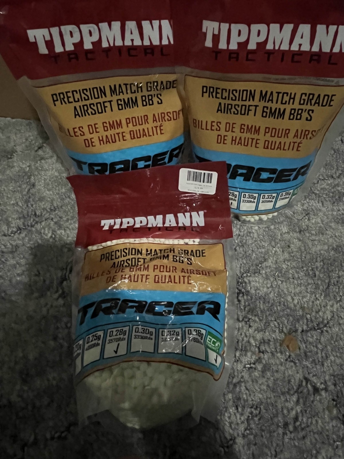 Tracer Airsoft bbs- 2 unopened bags (3570 rounds each)- 2 opened bags/container (1/3 or more full)- Estimated to be 7,000+ rounds