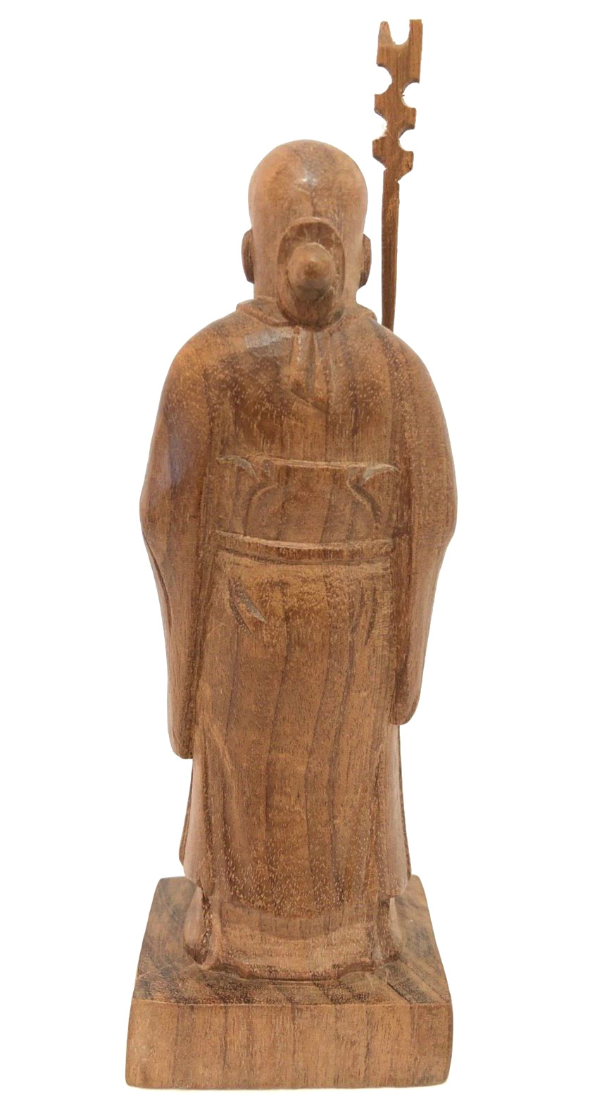 Vintage Hand-Carved Confucius Chinese Wood Statue Figurine with Staff