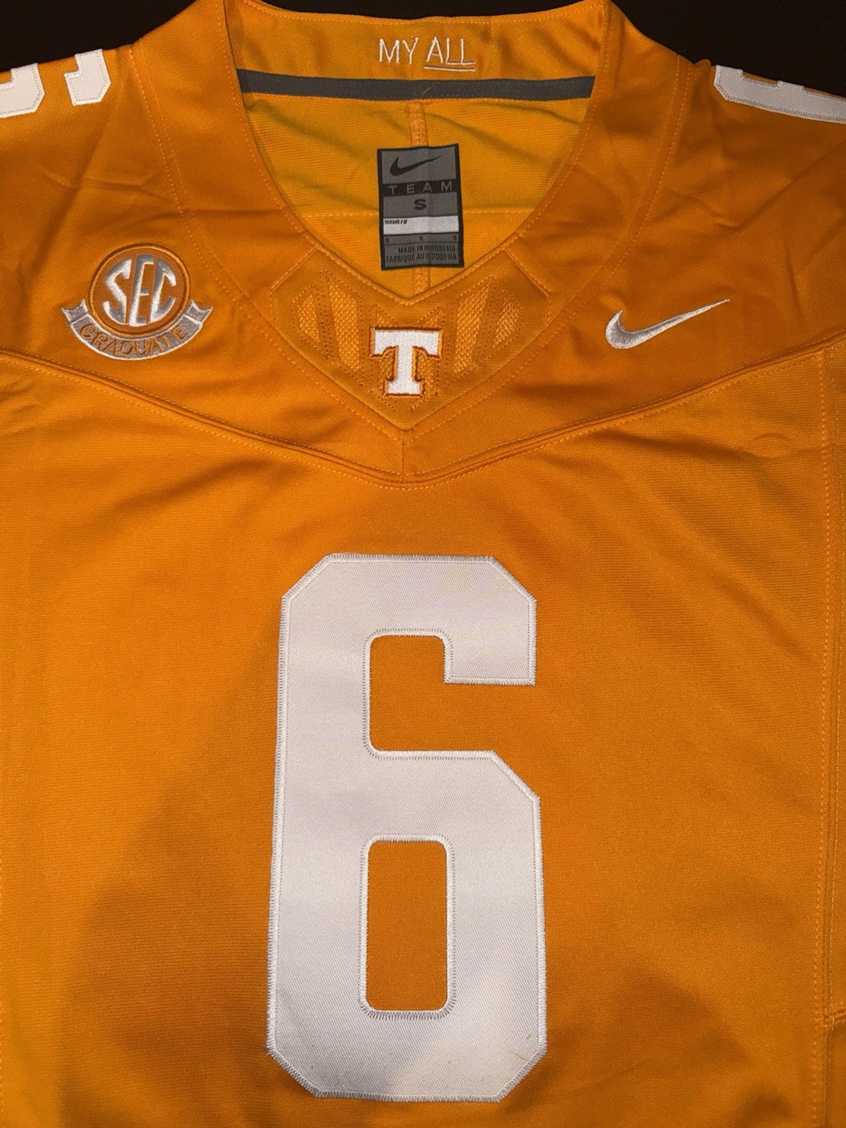Joey Aguilar Tennessee Volunteers Vols Orange Stitched #6 NWT
