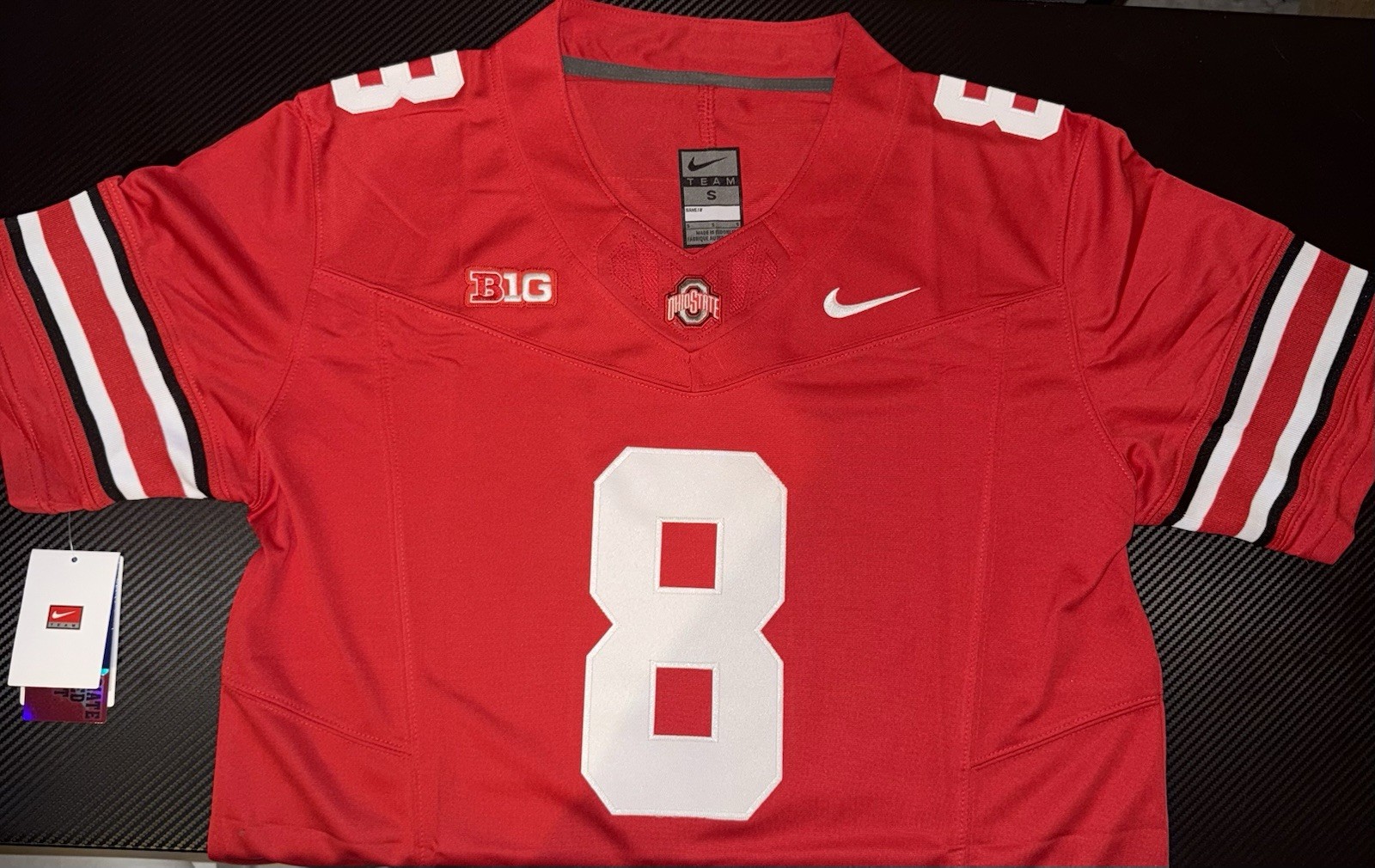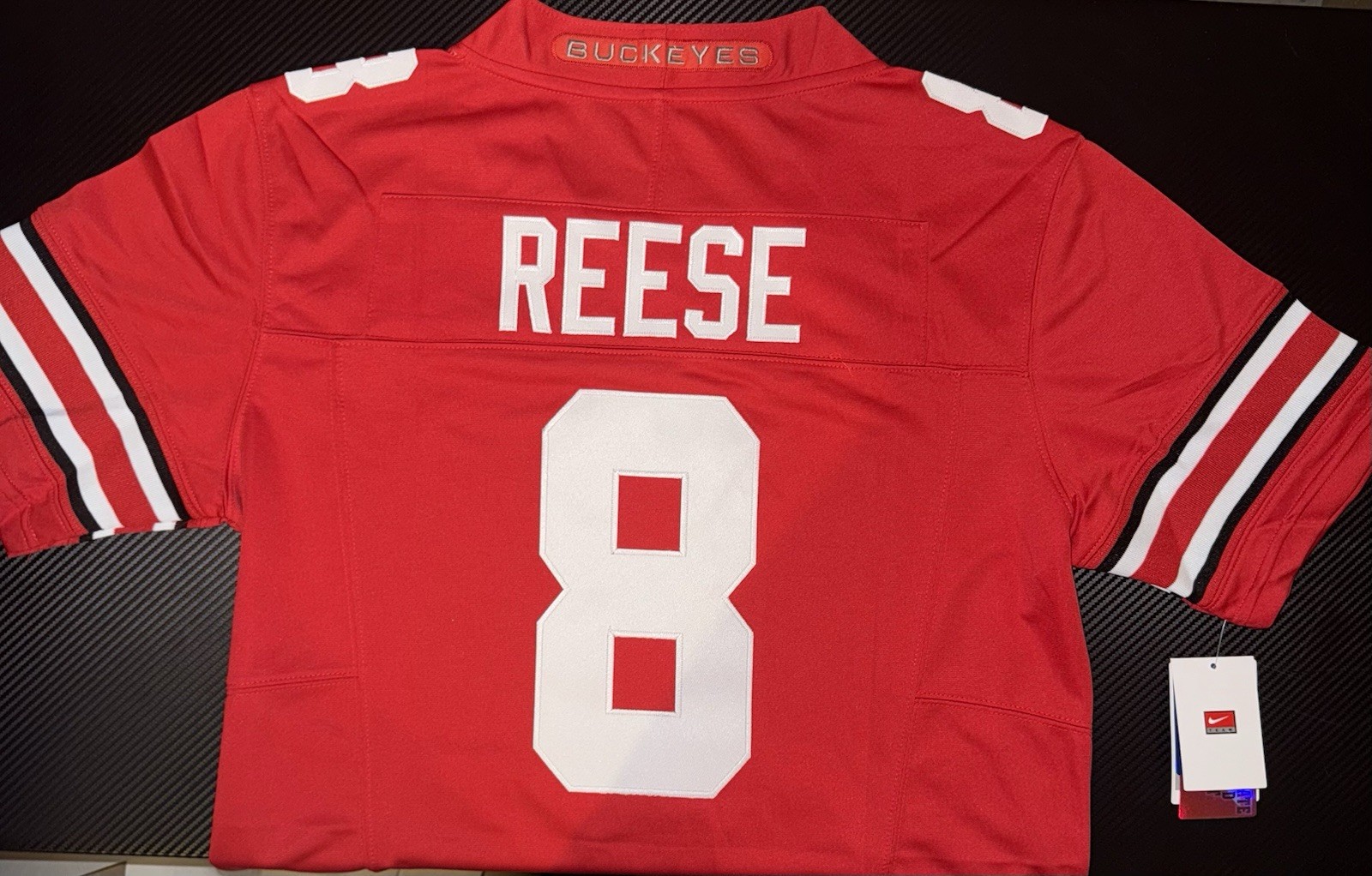 This Arvell Reese Ohio State Buckeyes (OSU) #8 jersey features stitched details and is listed in new condition. It is a good option for fans and collectors shopping in the Sports Mem, Cards & Fan Shop category. Free shipping is included with the purchase. Check the listing for details on sizing, materials, fit, and any included tags or packaging, as no additional specifications are provided here. Review photos and item notes to confirm the exact design and any team or player markings before ordering.