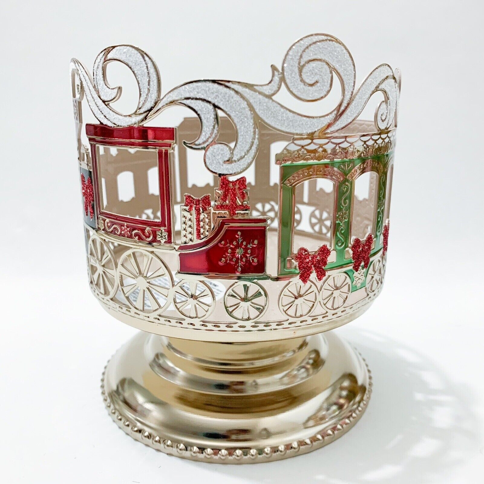 Bath & Body Works~CHRISTMAS TRAIN PEDESTAL CANDLE HOLDER~Fits a large 3-wick candle from Bath & Body Works**All items are new and come from a smoke free environment packaged with care, and shipped promptly!