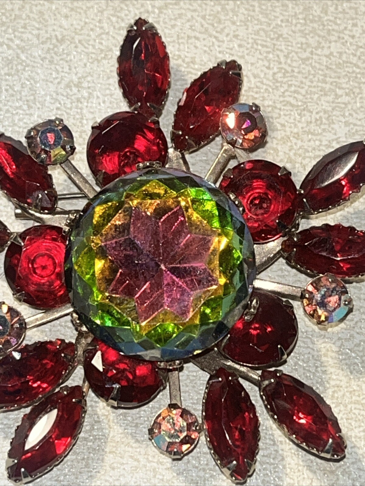 Vintage Juliana??? Style Red Aurora Borealis Rhinestone Brooch