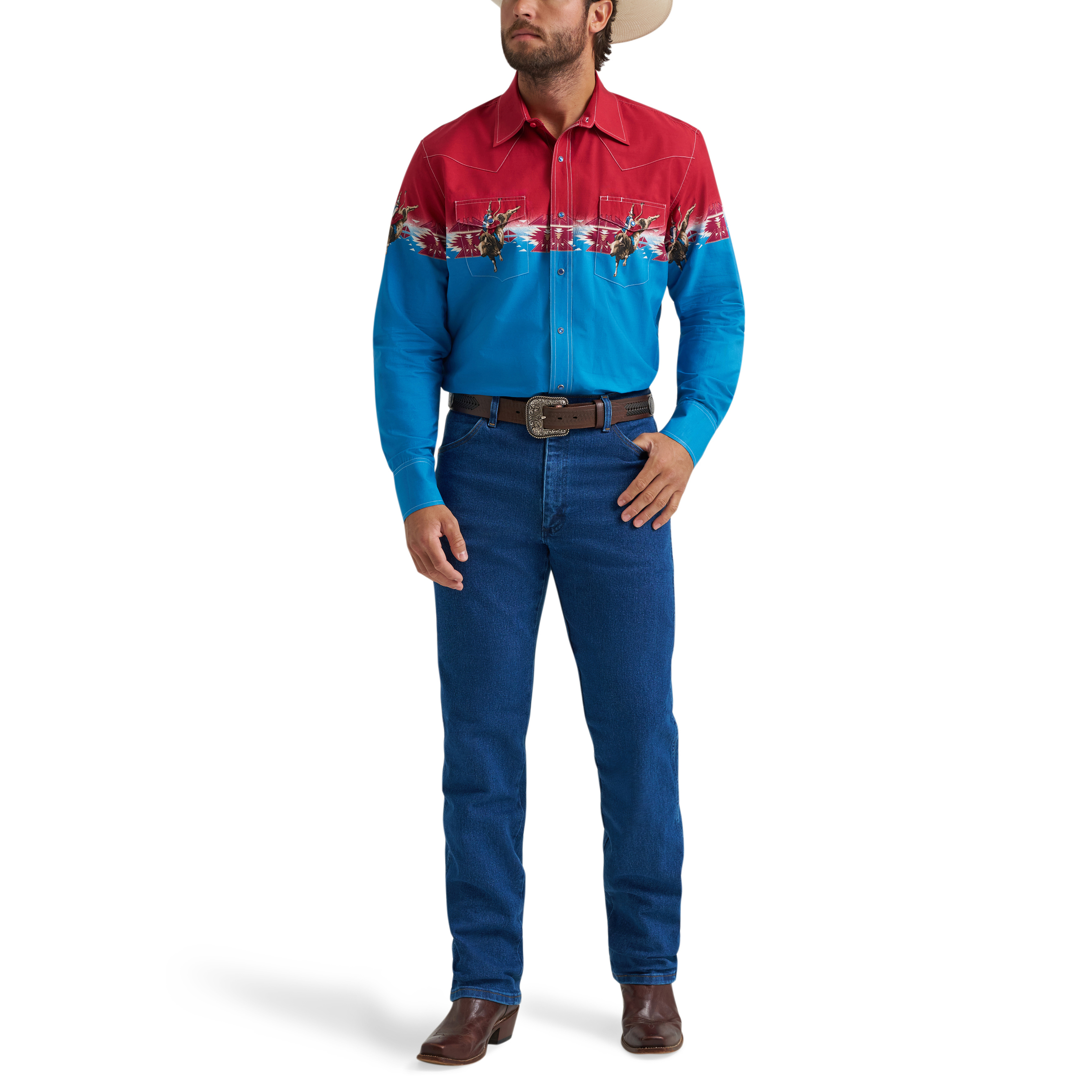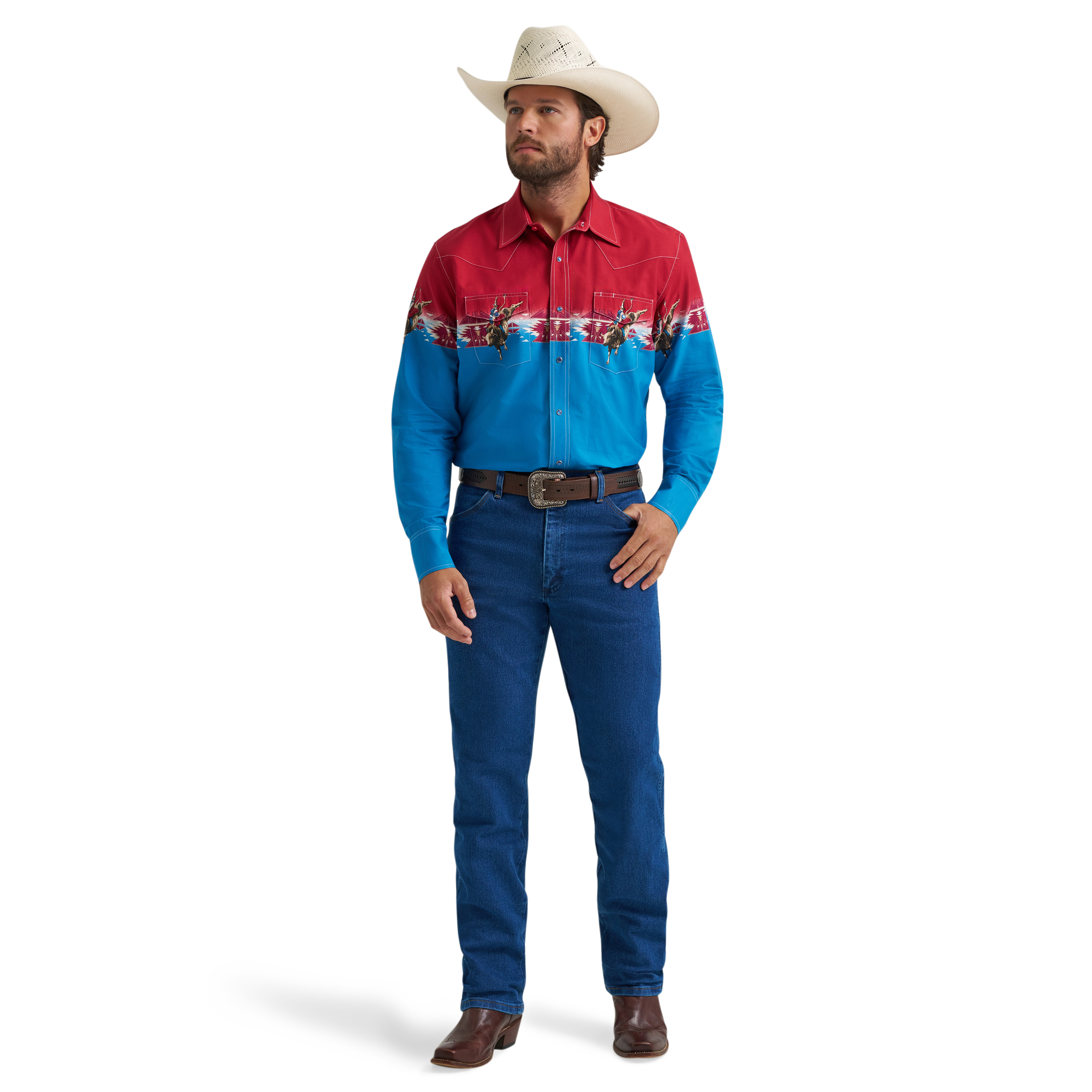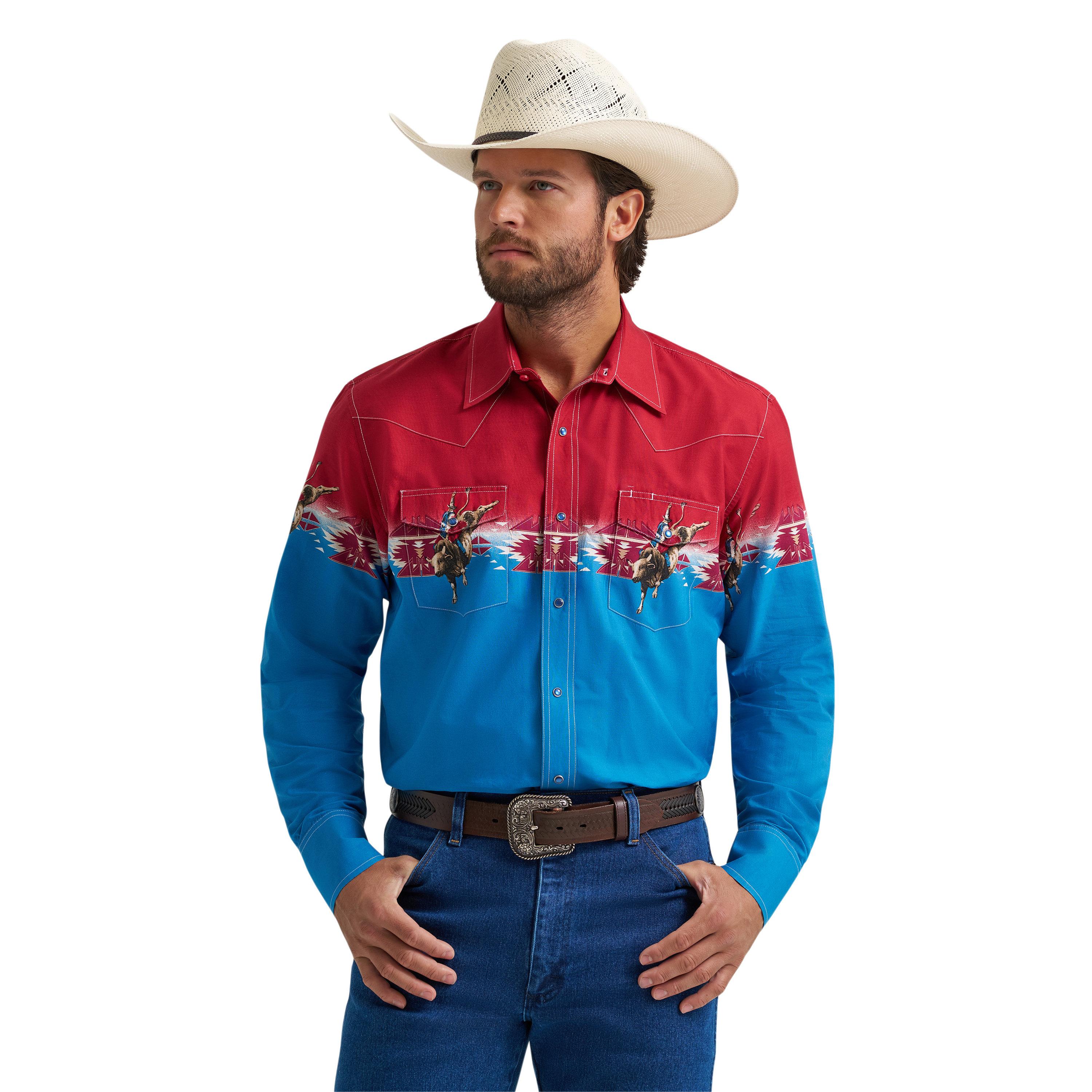 Wrangler Men's Checotah Classic Fit Red & Blue Snap Shirt 112379226