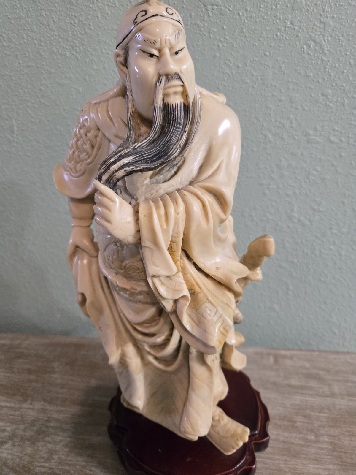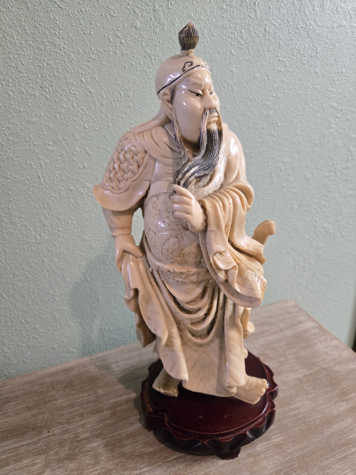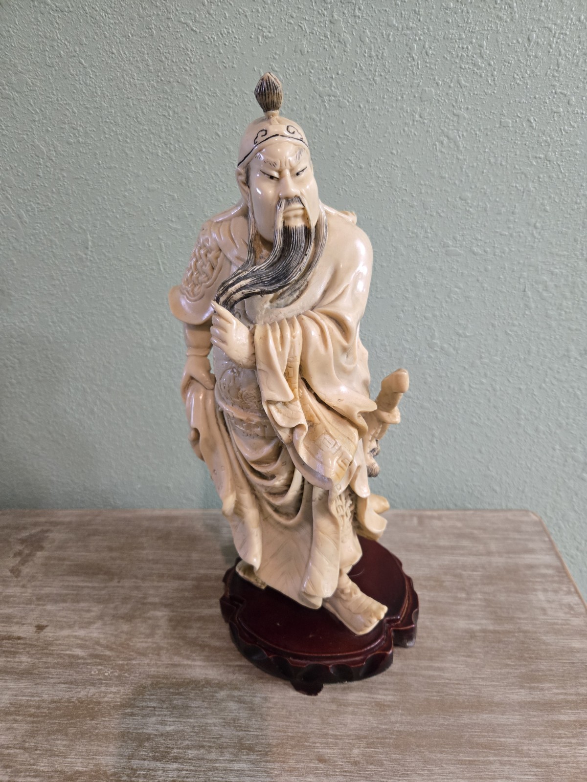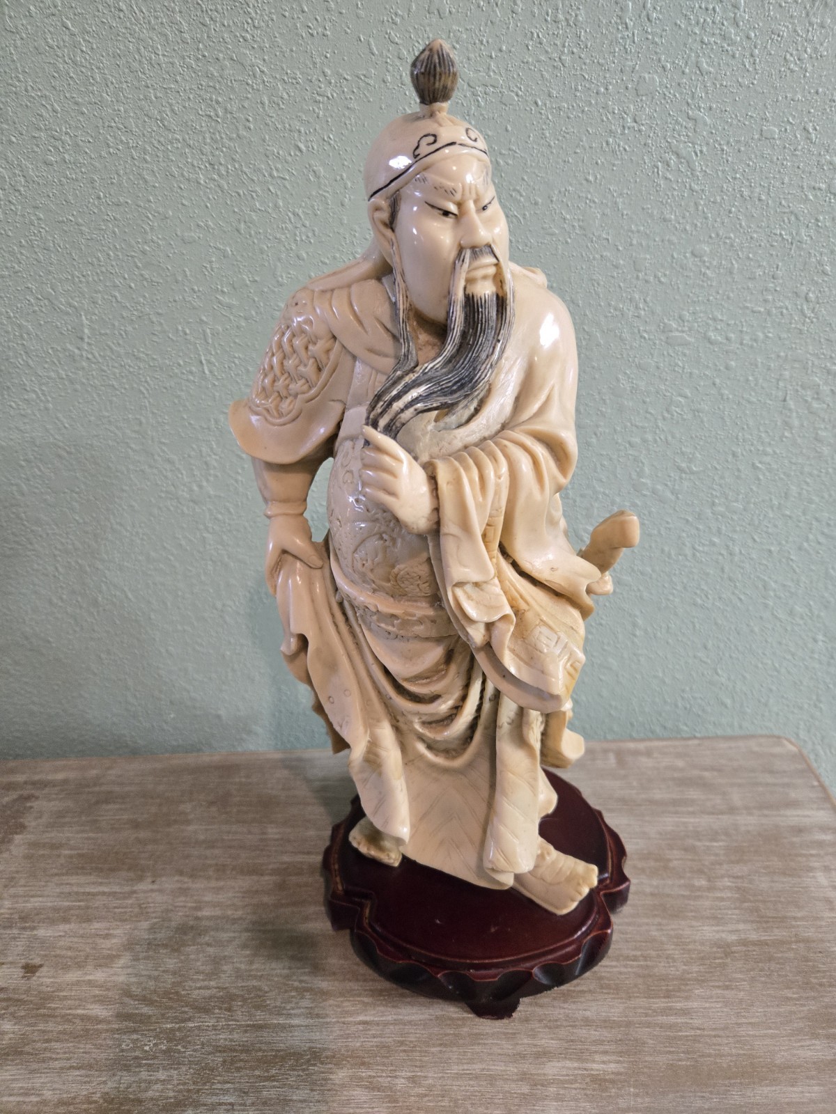Vintage Hand Carved Guan Yu Statue 15" Heavy Detailed Collectible