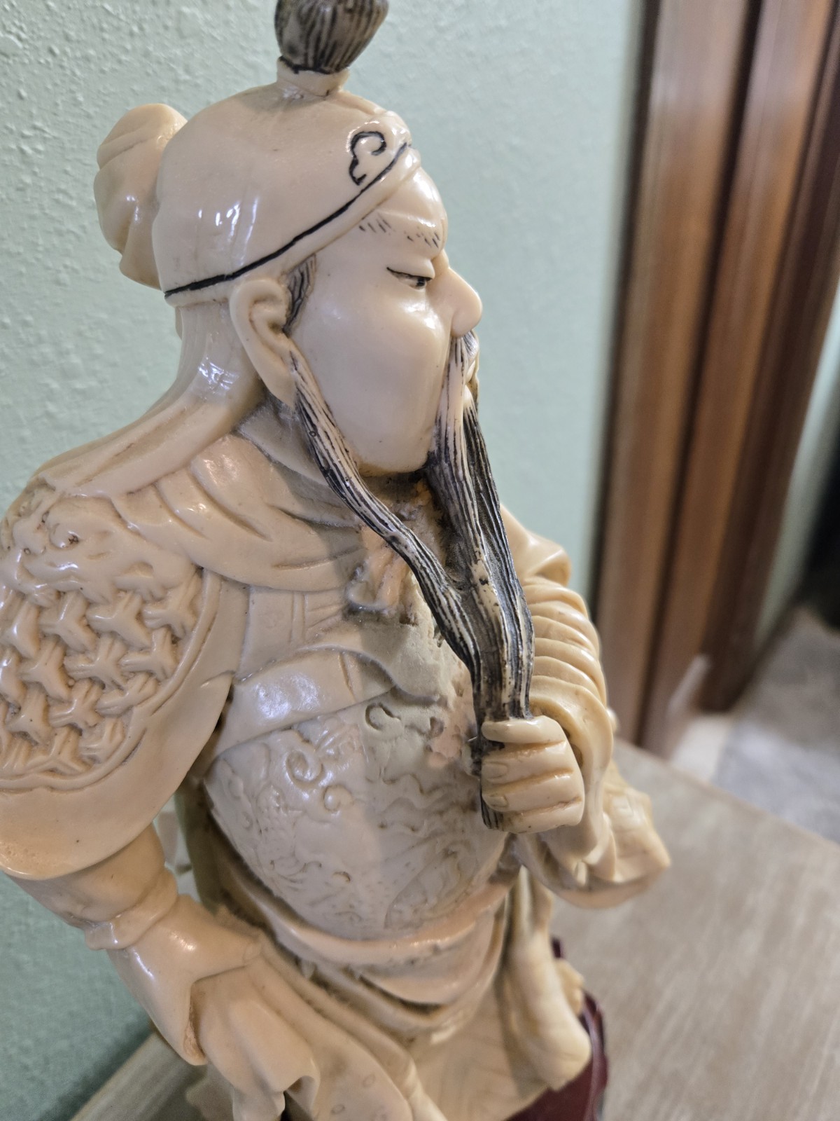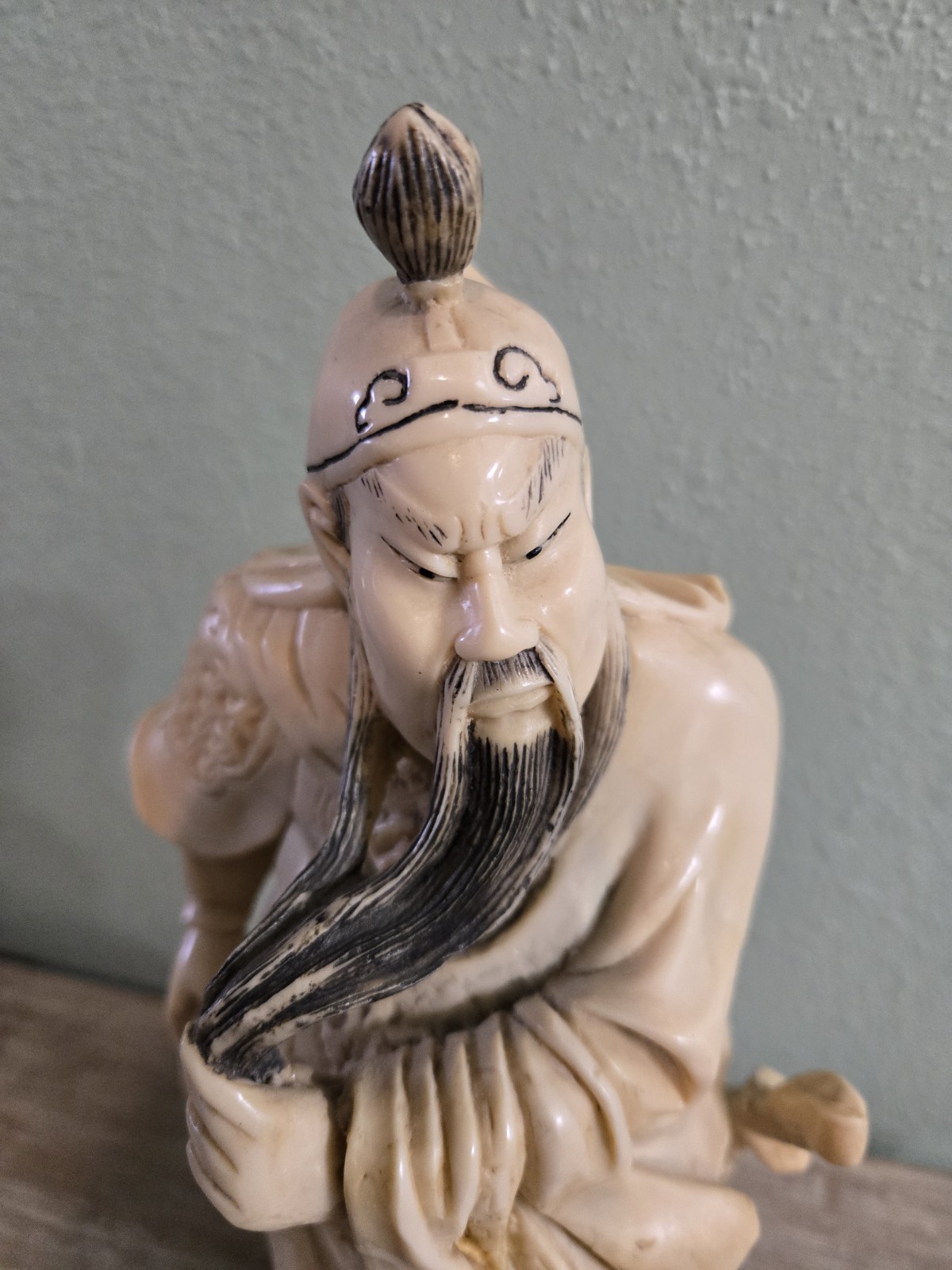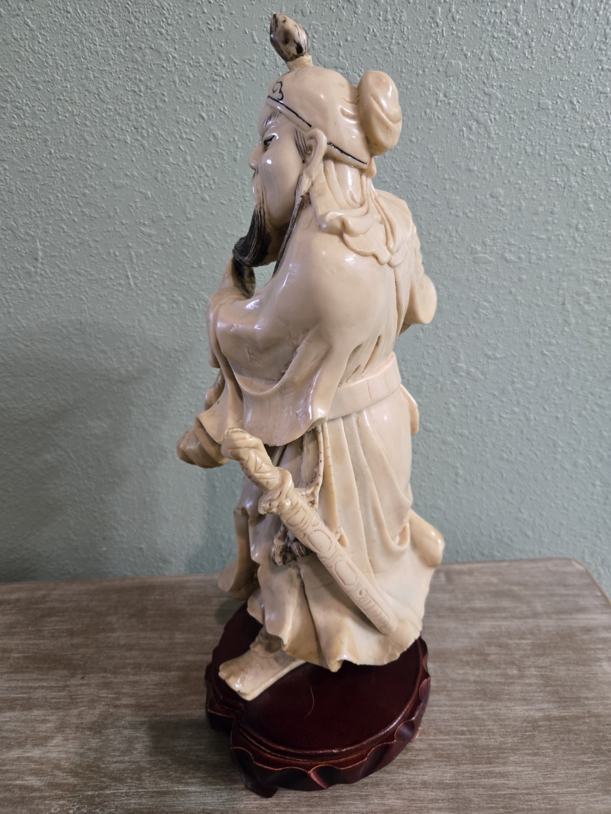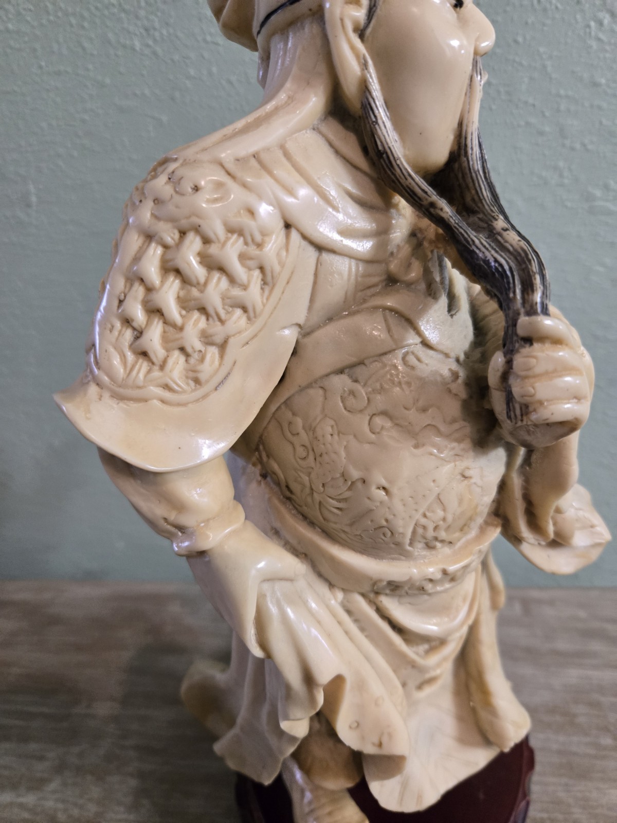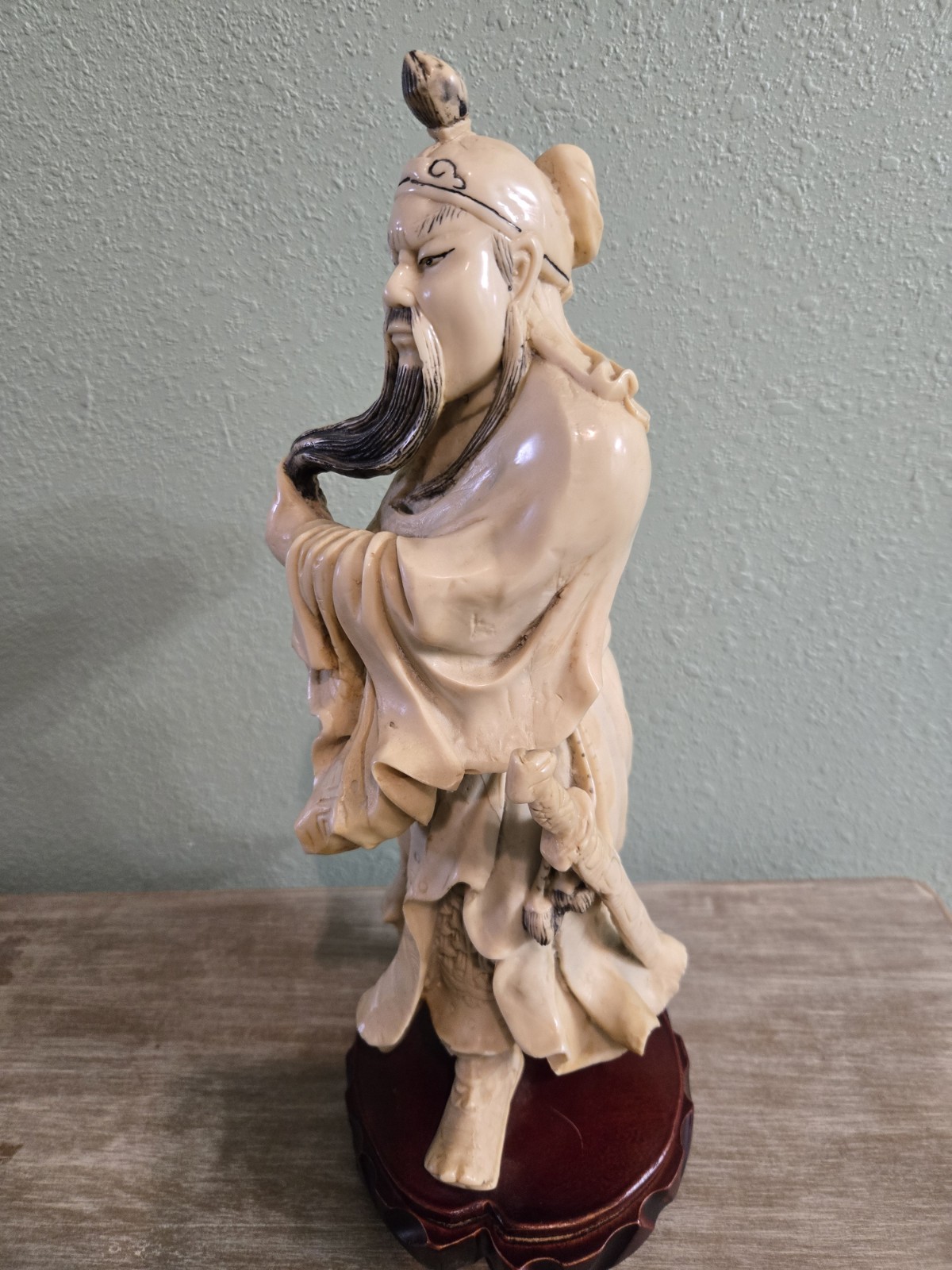 Vintage Hand Carved Guan Yu Statue 15" Heavy Detailed Collectible