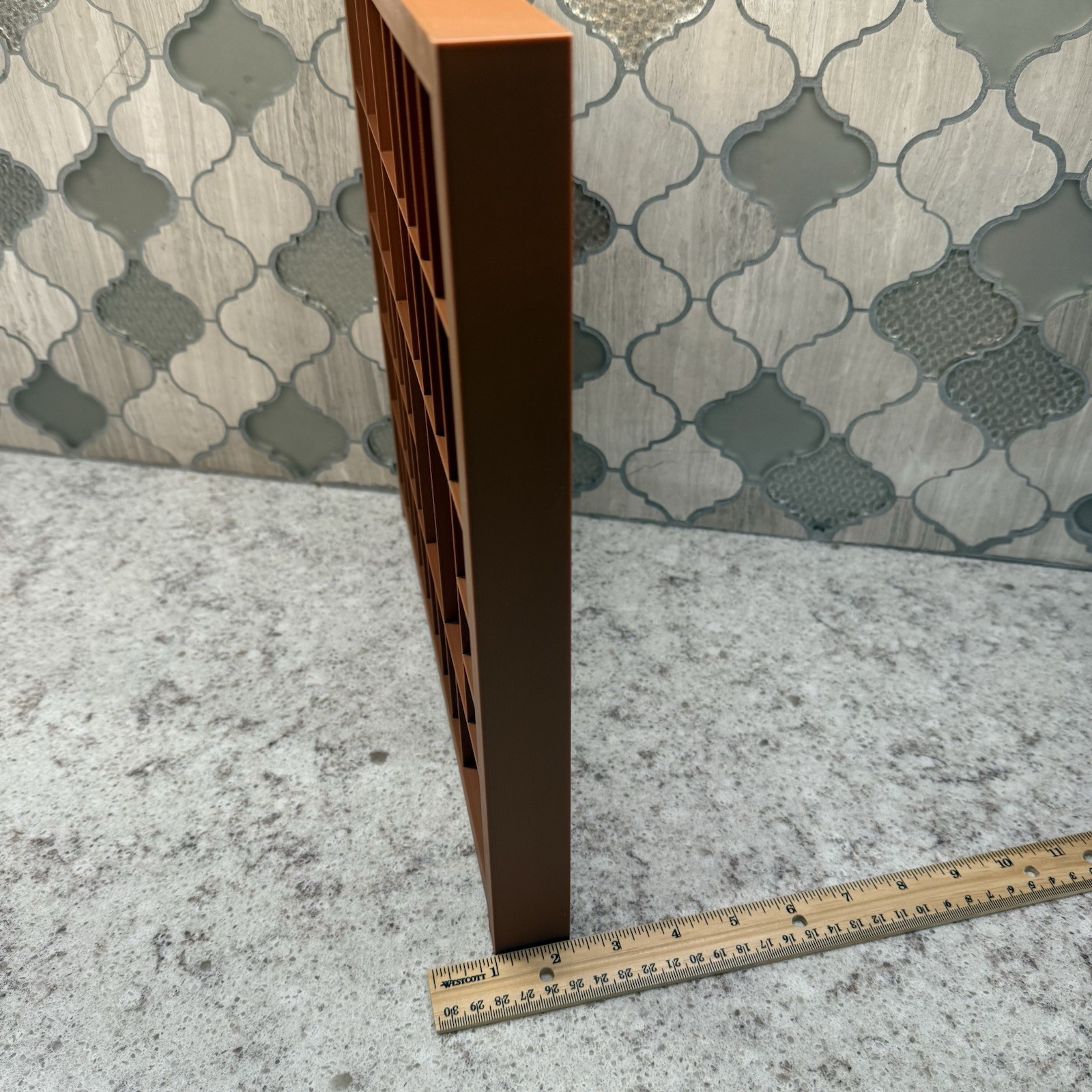 Trinket display shelf/tray is great for display of your miniatures, dollhouse finds and mini vintage trinkets. It has various sized shelves. This trinket display shelf is 13 5/8 inches tall by 13 5/8 wide and 1 1/4 inches deep. 3D printed in a matte brown PLA/plastic. Please note