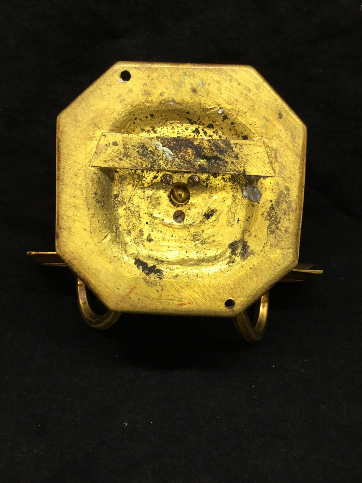 Antique brass wall sconce light fixture. Candelabra style. No sockets, just the fixture. Measures 7 3/4" across at widest area. Protrudes 4 3/4". Rear mount area is 4 1/2" x 4 5/8". No damage, just age related darkening. Please see all pics. Buyer to pay shipping charge. I will refund any shipping over charge.