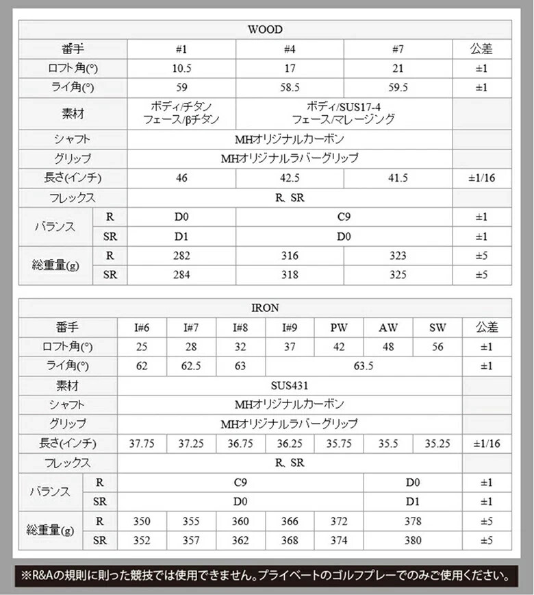 Brand set with affordability. 1W , 4W , 7W ,#6 , , , , PW , AW , SW , 11 Clubs Set With Caddie Bag1W Body : High quality forged 6AL-4V forging titaniumFace : 2041beta titanium,Inner weight Finish : Gold IP+ laser sculpture groove Head volume : 488 ccLoft angle : 10.5 degree Length : 46.0 inch Lie angle : 59.0 degree Gross weight : 268±5 g Balance: D0 ±1 Shaft : Mutsumi Honma original hyper kick graphite shafts4W Body : SUS17-4 Stainless steelFace : Maraging Finish : Gold IP+ laser sculpture groove Loft angle : 17.0 degree Length : 42.5 inch Lie angle : 58.5 degree Gross weight : 316±5 g Balance: C9 ±1 Shaft : Mutsumi Honma original hyper kick graphite shafts 7W Body : SUS17-4 Stainless steelFace : Maraging Finish : Gold IP+ laser sculpture groove Loft angle : 21.0 degree Length : 41.5 inch Lie angle : 59.5 degree Gross weight : 323±5 g Balance: C9 ±1 Shaft : Mutsumi Honma original hyper kick graphite shafts IRON Loft angle : 25.0 degree Length : 37.75 inch Lie angle : 62.0 degree Balance: C9 ±1#7 Loft angle : 28.0 degree Length : 37.25 inch Lie angle : 62.5 degree Balance: C9 ±1#8 Loft angle : 32.0 degree Length : 36.75 inch Lie angle : 63.0 degree Balance: C9 ±1 Loft angle : 37.0 degree Length : 36.25 inch Lie angle : 63.5 degree Balance: C9 ±1 Loft angle : 42.0 degree Length : 35.75 inch Lie angle : 63.5 degree Balance: C9 ±1 Loft angle : 48.0 degree Length : 35.50 inch Lie angle : 63.5 degree Balance: D0 ±1#SW Loft angle : 56.0 degree Length : 35.25 inch Lie angle : 63.5 degree Balance: D0 ±1Shaft : Mutsumi Honma original hyper kick graphite shafts PUTTER PT Loft angle : 3.50 degree Length : 34.0 inch Lie angle : 72.0 degree Shaft : Mutsumi Honma Original steel shaft Caddie Bag Diameter : 9inchTOP : 6 Way dividers Weight : About 4.0 kg Country of origin : JAPAN Item will be shipped directly from Mutsumi Honma Tokyo Division.