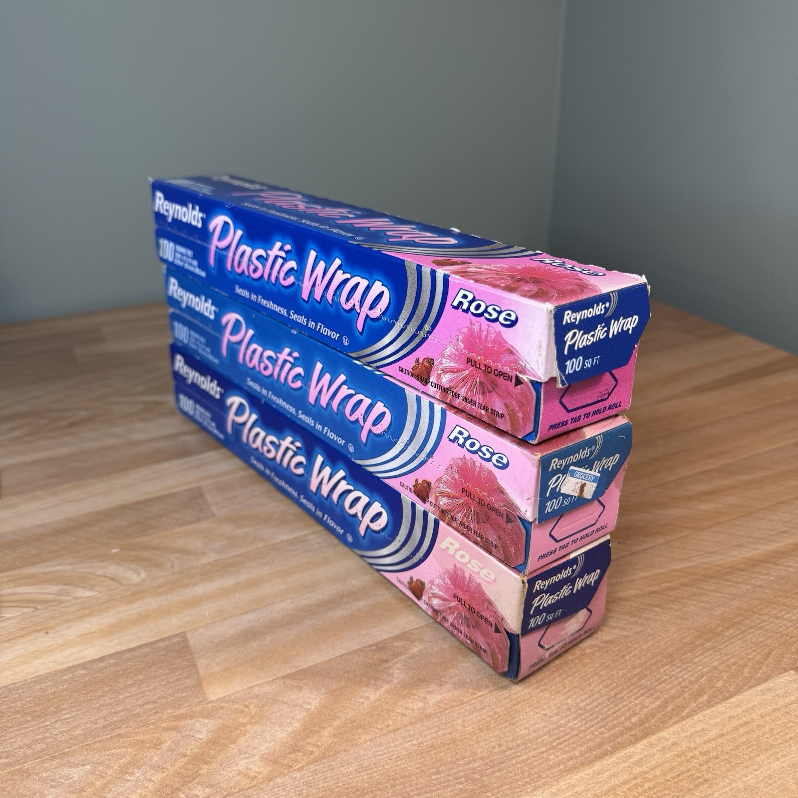 VTG Y2K Reynolds Colored Rose Pink Plastic Wrap 300 sq ft SEALED NOS - Lot of 3 Specs