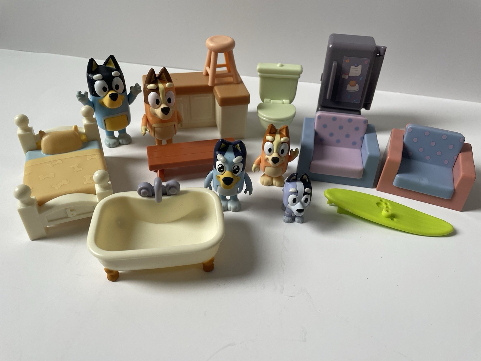Bluey’s family home house player replacement pieces and characters. Used, some pieces have scratch/ wear and tear to them. See pictures.
