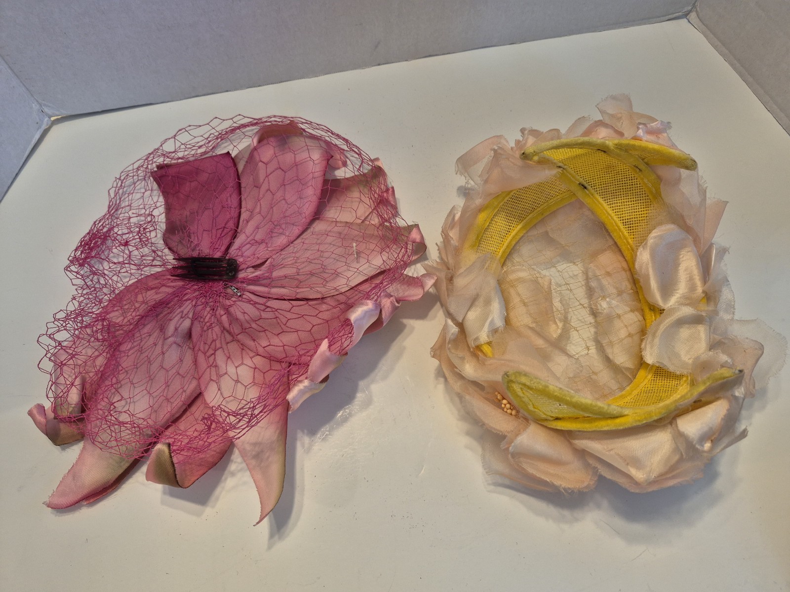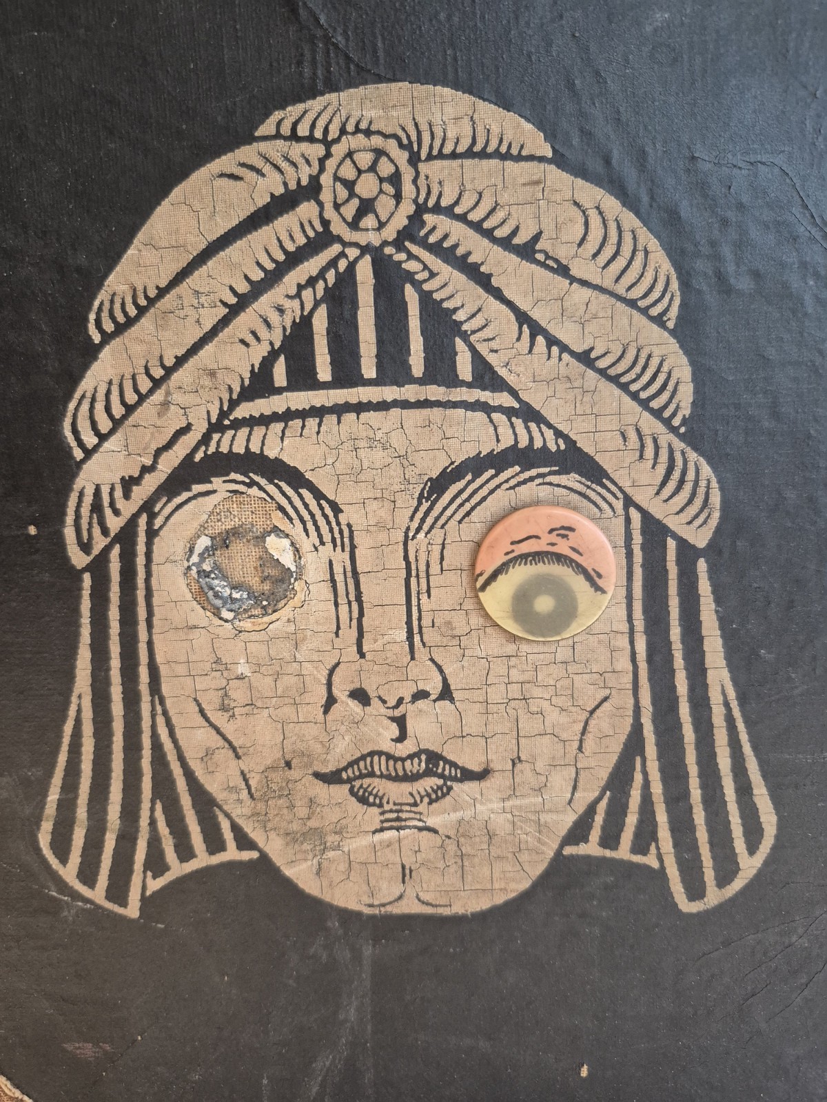 Will ship within one business day with a tracking number.Definitely not haunted, vintage 1930's hat box/train travel case. With this box your family will feel safe with one eye always watching. Once in your home your children will not start talking about things in the closet the box is in. Your dog will not bark at corners of the room where there is nothing to be seen. With its beloved antique charm, you have no need to worry about objects moving around on their own-that's just your husband. The leather handle and lined interior hold mystery and intrigue, not spirits seeking revenge. There is no need to sleep with one eye open. (Your new box will do it for you.) Worn in some places as you can see in the photos. The clasp works perfectly. Throwing in two vintage fascinators which were found inside the box.Will not ship on Spirit Airlines.