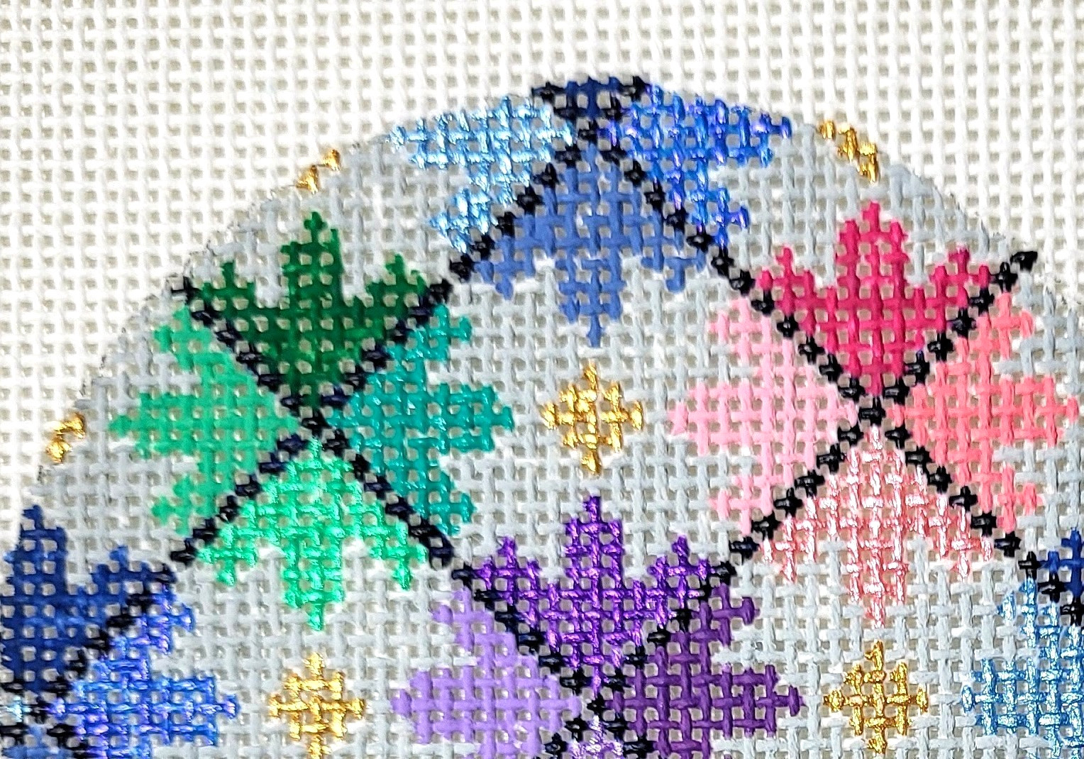 Handpainted Needlepoint Canvas 18m Geometric Star Ornament 3" Round