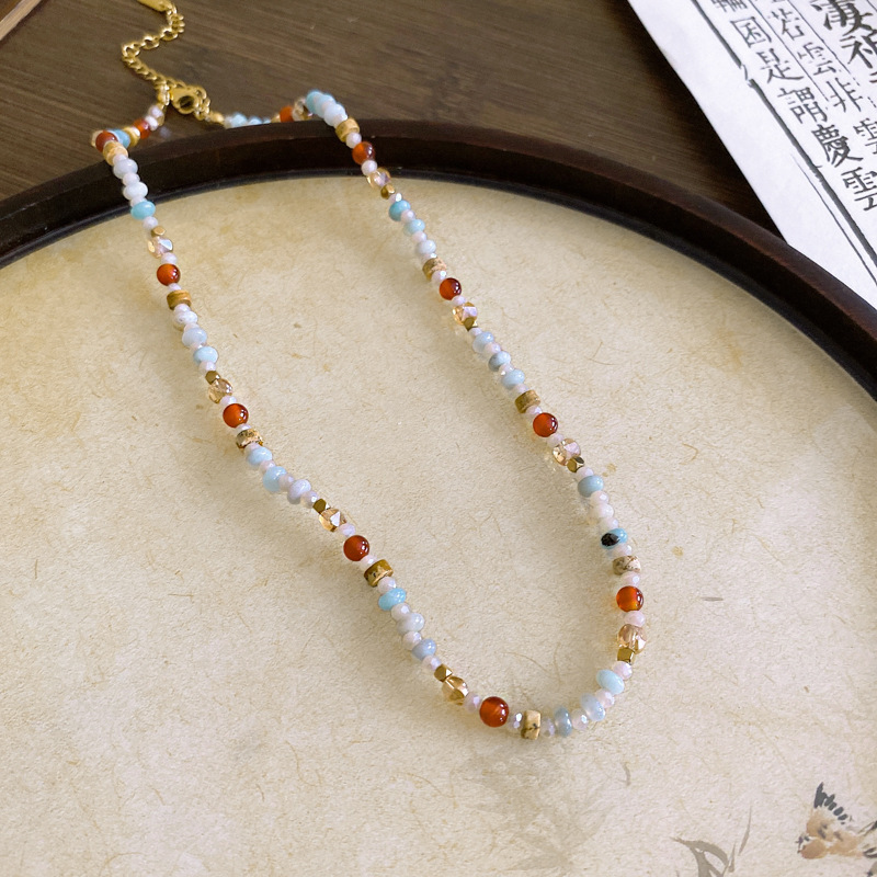 Women's Bohemian Gemstone Crystal Necklace Layering Luxe Beaded Chain