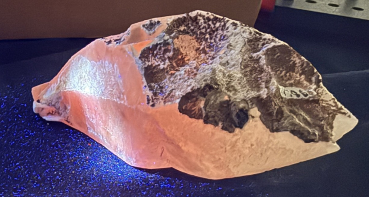 Fluorescent Dogtooth Mangano Calcite Specimenfrom Guanajuato, MexicoFluoresces brilliant orange under LW lightMeasures 14 cm x 7.5 cm x 5.5 cm at widest partsweighs 526 grams | 1 lb. 2.6 ozFrom my father Frank Decaminada's collection.He was an avid rock collector in his second career, and not only amassed a huge collection of gems and minerals from all over the world, but also left behind a vast library.He was active in a number of mineral organizations including the Georgia Mineralogical Society and the Southeast Federation of Mineralogical Societies.Worldwide shipping through the eBay's International Shipping Program.Thanks for checking out my listings.