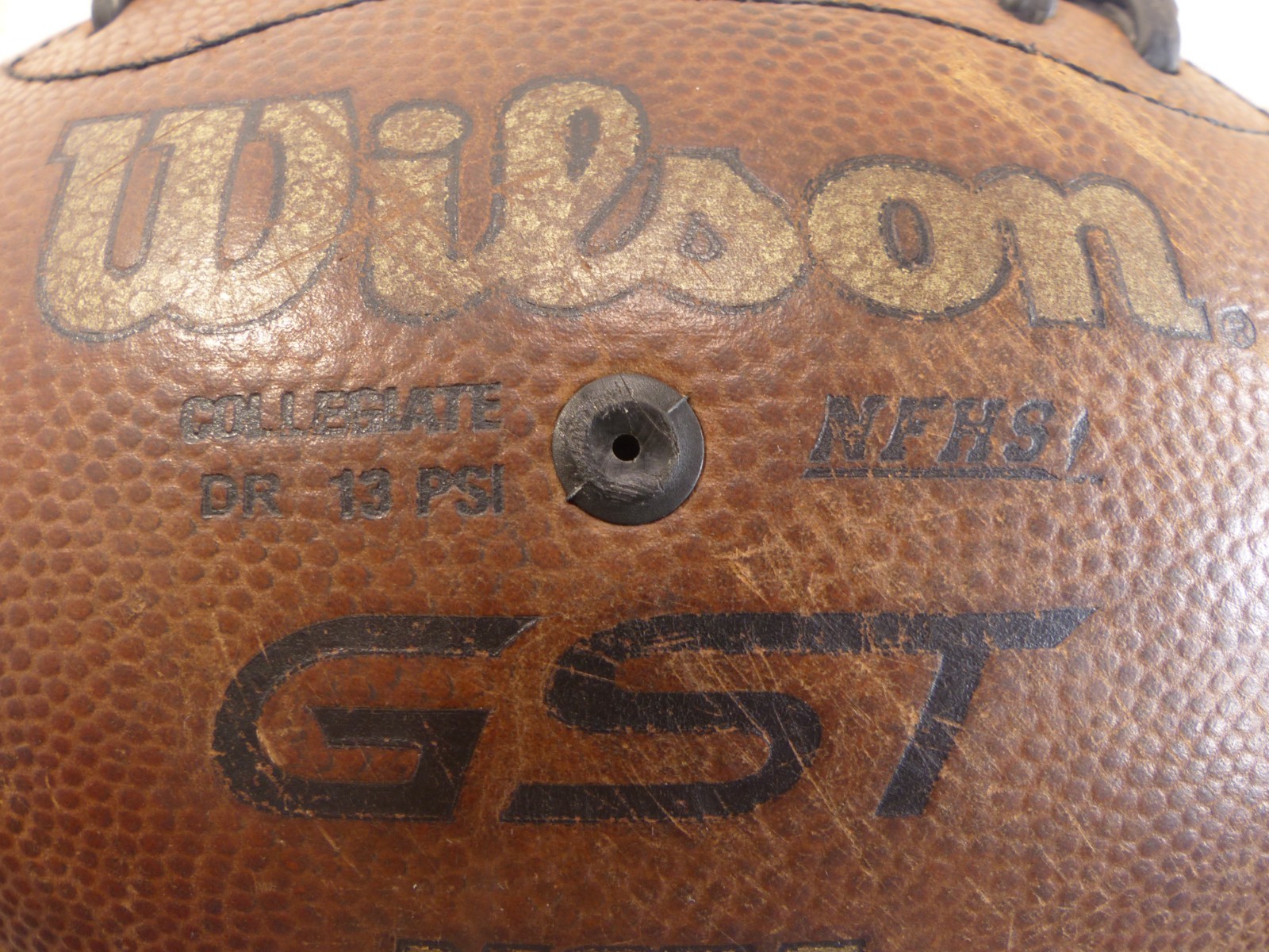 Welcome!Hello, this listing is for a pre-owned Wilson GST 1003 WTF1003 Official NCAA NFHS Collegiate Leather Football Game Ball! Don't miss out here as it is listed at the buy it now price of just $69.95 with $12.00 shipping! Ball has light wear and marks from use. It is in good physical condition. Ball holds its shape and still holds air. This ball is still in very good usable condition. See pictures for details! Comes as shown in the photos.What you see is what you will receive. Thank you for viewing.*** PLEASE NOTE *** eBay adds sales tax for all sales and purchases in all states based on that state's tax regulations. It is now mandated by state law in which eBay must abide by. The sales tax is added to the total invoice after purchase of an item. The state general sales tax rate of Colorado is 2.9%. I generally ship my items via USPS Mail. If you purchase multiple items, I will combine shipping to save you money. I generally ship Monday through Friday, excluding the holidays where the Postal Service is closed. Items are usually shipped within 48 hours of receipt of payment. My goal is to provide you with a quality product in a timely manner! Please feel free to check out my feedback rating, as I believe this reflects my desire to make sure each transaction is a positive one! Refunds and returns will be accepted on the basis that an item shows up not as described or DOA (Dead on Arrival). Return shipping will be paid by the buyer if the buyer wishes to return an item. Please understand that the majority of my items are used and have had previous owners. I do my best to describe everything about an item. Shipping on this item is $12.00