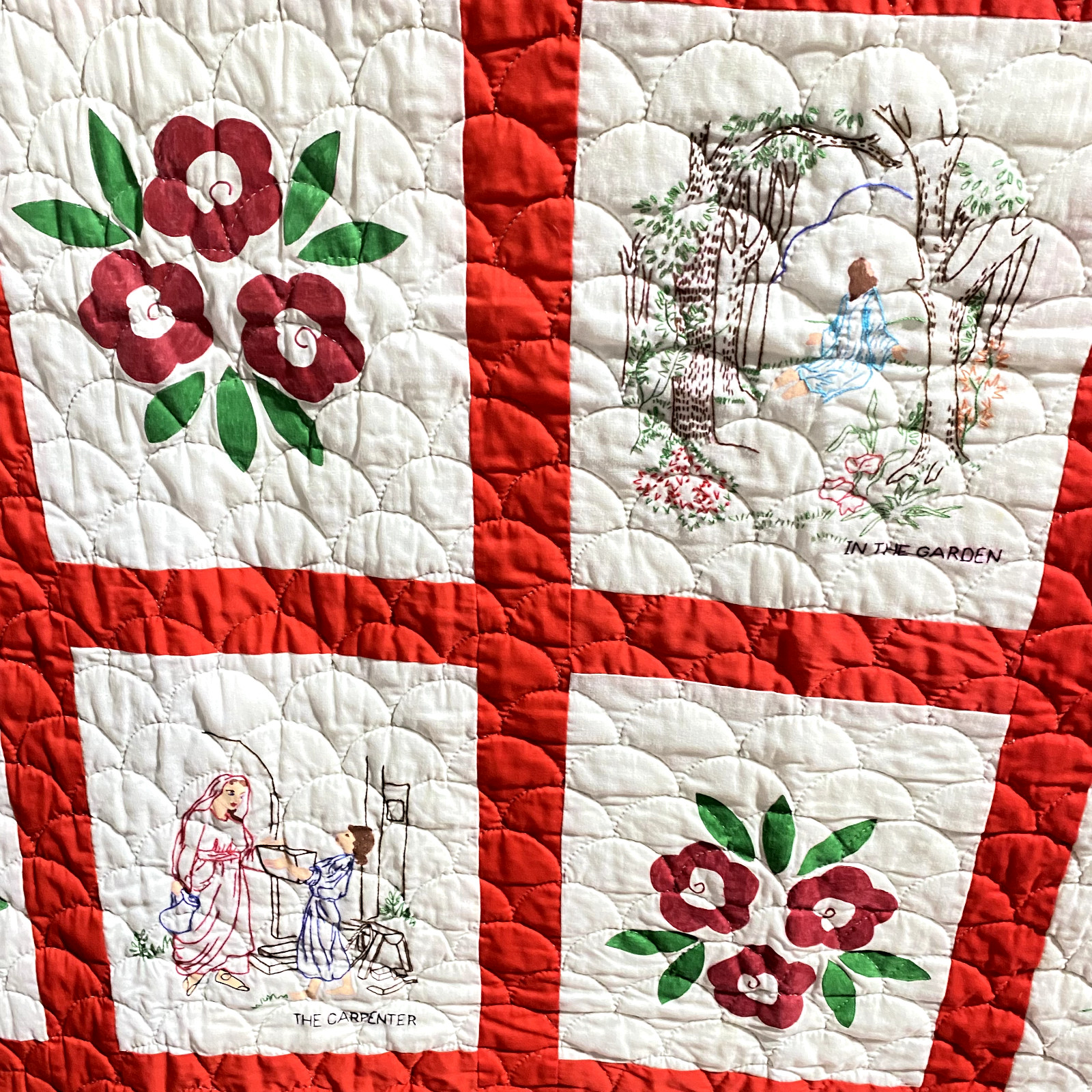Vintage Handmade Quilt Bible Block Embroidered Christmas Jesus 80x68