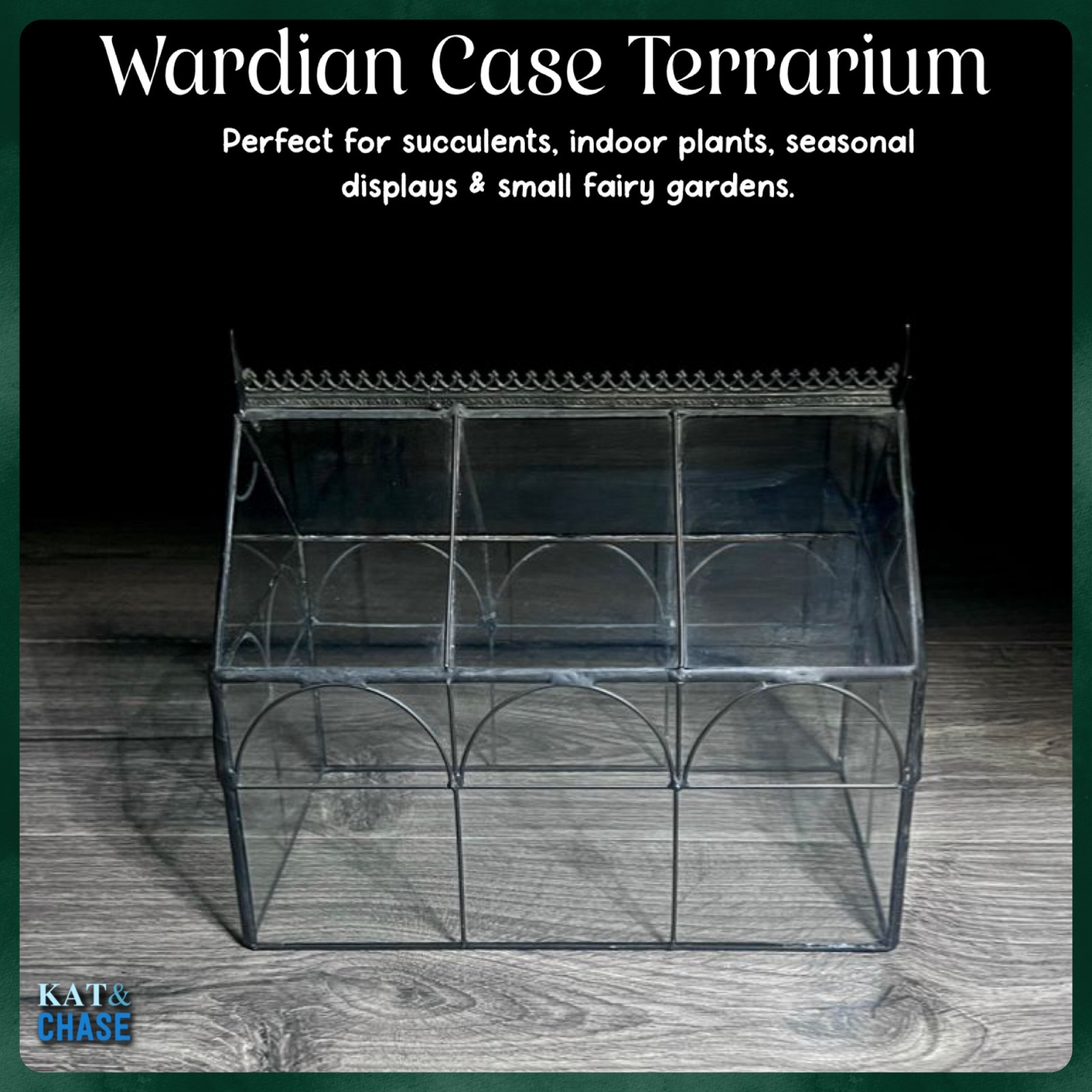 H Potter Glass Terrarium – Wardian Case Fairy GardensBring a touch of vintage charm and botanical beauty to your space with this H Potter Glass Terrarium, inspired by 19th-century English conservatories. Perfect for displaying tropicals, ivies, mosses, and small plants, this premium-quality Wardian case is both functional and decorative.Features✔ Handcrafted Glass Terrarium – Beautifully designed for home, office, or event décor.✔ Premium Materials – Real Glass.✔ Detailed Brass Accents – Includes brass filigree trim and finials for an elegant touch.✔ Easy Access & Planting – Lift the entire glass for access to terrarium ✔ Finial Metal design✔ 3mm Thick Glass – Provides strength and stability while showcasing your plants.Approx Dimensions: 9" x 5" x 8"ConditionIn good preowned condition, glass is undamaged and clear, but there is no trayPlease remember to examine photos before purchase and let us know if you have any questions before purchase! Thank you for visiting our shop! We hope to see you again! Return PolicyNot all listings allow returns so please be sure to check before purchase. All items that accept returns have free return shipping for 30 days, and we will fully reimburse you. However, the item must be in the same condition as it was sent. (If it was shipped in excellent condition/unopened it must be the same when it is shipped back) Similarly, tested electronics must be in the same condition as it was shipped. (Do not ship extra batteries) In cases of partial damage, partial refunds may be arranged at our discretion.***Note: if the package was damaged during transport, refunds can be collected from the postal service. If you are worried, take a picture of the box/package before cutting the tape & please contact us quickly to file shipping damage claims.We do our very best to describe our listings accurately and completely! Please remember to review the photos carefully (They are part of the condition description!). If you have any questions please send us a message! International Purchases: We currently use the Ebay Global Shipping Program. This is to ensure protection and bolster security for the buyer and seller! The buyer is responsible for import duties/ customs and taxes levied by their country. (The G.S.P. should provide the details at time of purchase!) Remember to save our store! Your support is greatly appreciated!If you would like to purchase more than one item from our store, please send us an message! We will be happy to combine shipping!ShippingPLEASE READ OUR SHIPPING POLICY BEFORE PURCHASEWe use USPS Parcel Select Ground shipping which arrives on average within 5-9 business days and USPS Priority Mail Shipping which averages 1-5 business days. Although both methods can take longer.As the post office is closed Sunday and only open for a few hours on Saturday, weekend and Friday purchases may not be shipped until Monday.If you want a different shipping method, leave us a message with the desired shipping and we will send you an updated invoice with your shipping method included. Also, please send us a message before purchase for international shipping.We pack items carefully and ship quickly once payment is confirmed through Paypal!!! *Don't forget to check out our Ebay shop at https://www.ebay.com/str/katandchase for more RARE items, Vintage Collectibles, Hallmark Keepsakes & fun POP CULTURE finds well as other awesome collectibles.Also Visit us on:Poshmark - KatandChase for a collection of fashionable clothes and