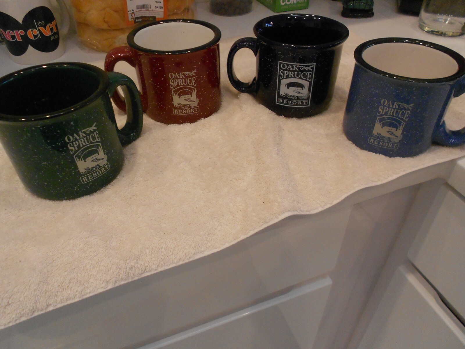 OAK N' SPRUCE RESORT STONEWARE MUGS-(4) ALL DIFFERENT COLORS-EXCELLENT CONDITION Specs