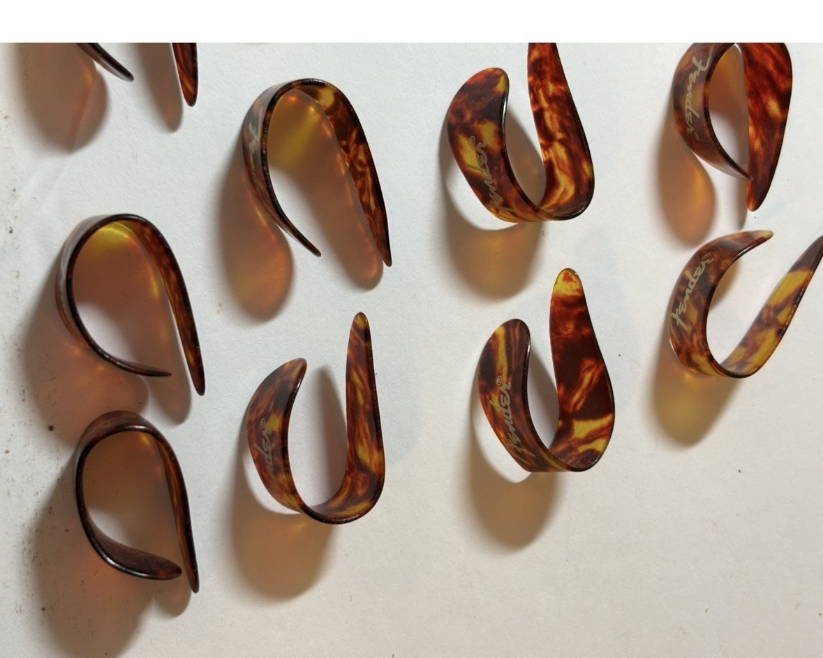 This listing includes 12 vintage Fender medium shell thumb picks for guitar playing. Condition is not provided, so check the listing for details, including whether these are new old stock as stated in the title. Thumb picks can help with consistent attack and comfort for fingerstyle or hybrid picking, depending on your technique and fit preference. Price is $24.00 USD. Free shipping is included; check the listing for details on handling time, carrier, and estimated delivery dates.