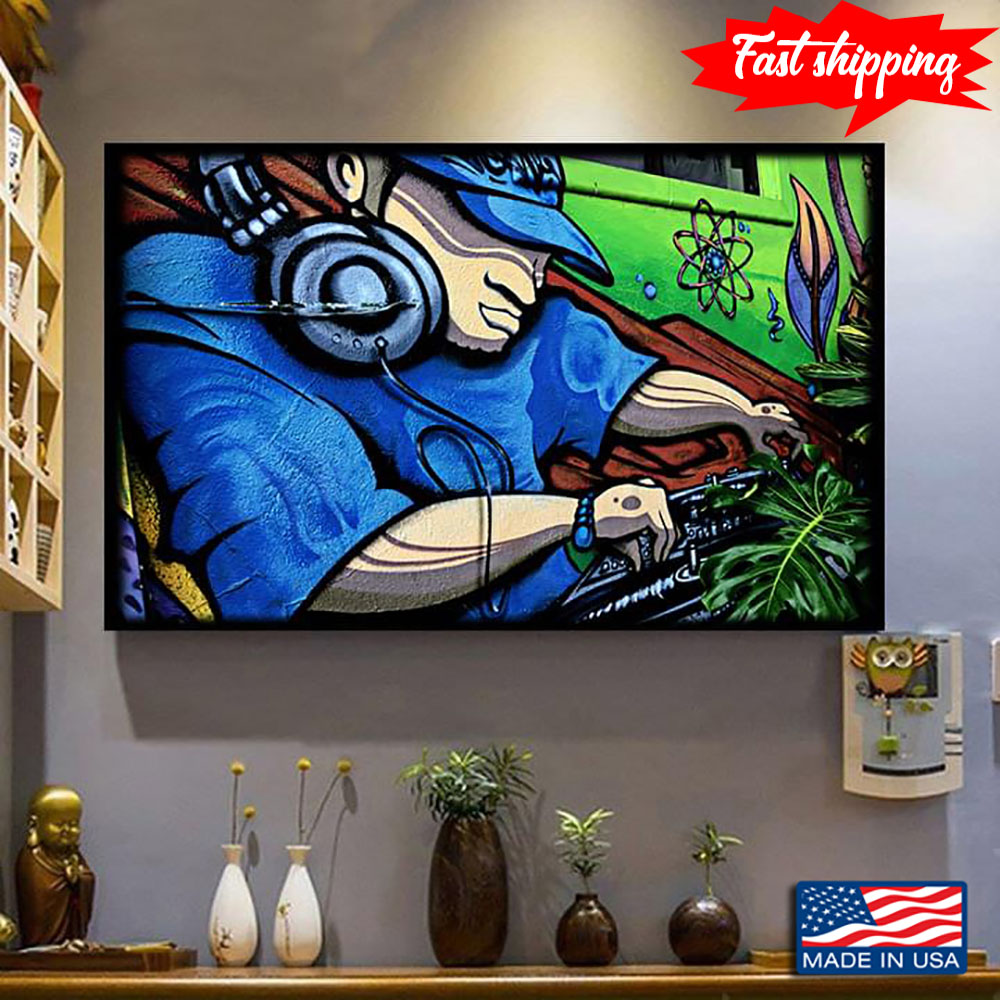 Vintage Cool Man Playing DJPremium Matte posters ( No Framed )Design & Printed in the USAMatte edge-to-edge print on 200 GSM paperMultiple sizes: 11x17, 16x24 InchFingerprint and smudging resistantShipped in well-protected cardboard tube packagingFor indoor useSHIPPINGOn average, merchandise is produced and shipped from our facility 2-3 business days after purchase.Standard shipping/transit times apply (1-7 days for domestic and 4-15 days for international).Replacement/return policyWe stand behind the quality of our products and guarantee our workmanship 100%. Any defects or errors on our part will result in a replacement at no charge.We typically do not accept returns due to user error such as incorrect selection of sizes, designs, colors, etc.