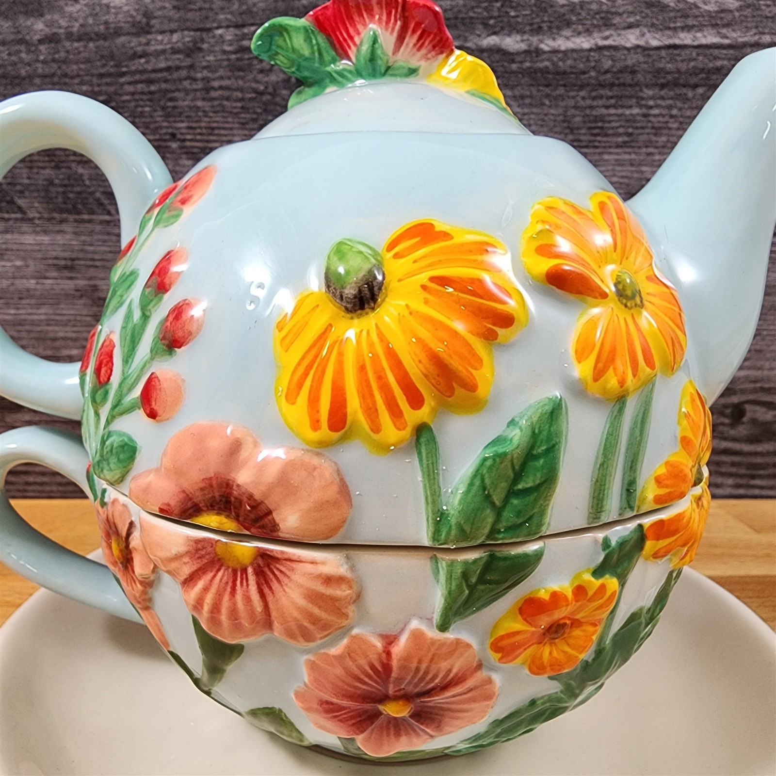 Wildflower Tea For One Ceramic Floral Teapot Set - Garden Bloom Design