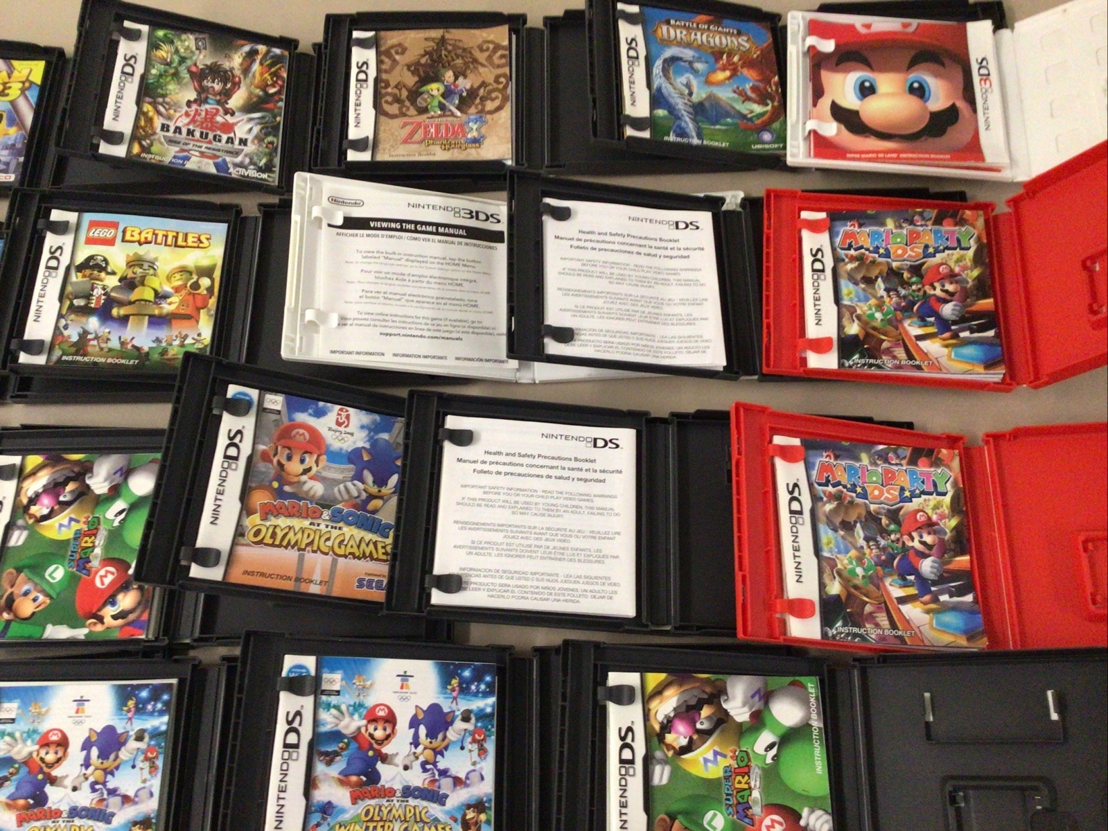These case are in used condition but very good condition there will be minor wear and scuffs as well, all but 3 comes with Instruction booklet as you can see in the photos. Even though there is some paperwork inside the 3 that don’t have a Instruction booklet which are the Zelda 3 DS, Harrypotter, Newer Mario, so please view all photos to get a better feel ofYour purchase. Mario DS cases take up the bulk of this lot there’s a few doubles as well, 13 Mario’s. No games included.If you have a problem you can contact me directly, I can and I will do my best to work with you. Thanks for viewing my listingsBe safe.