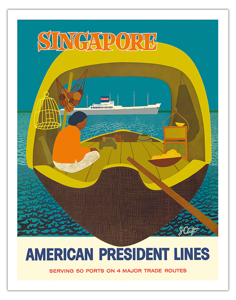 Singapore - Vintage American President Lines Travel Poster by John Russell Clift