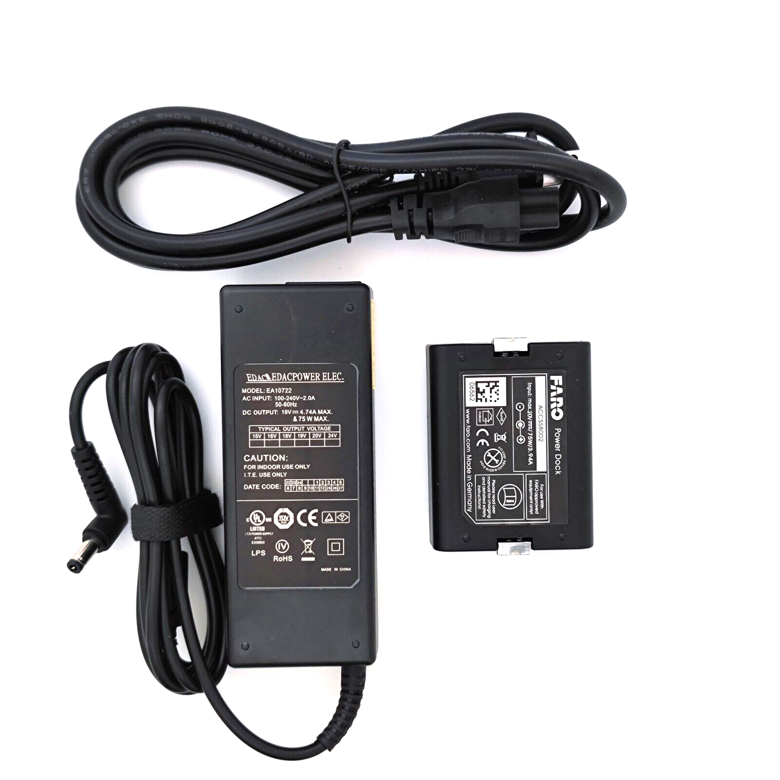Charger For Faro S70 S150 S350 M70 Battery Faro Focus 3D Laser Scanner Battery Power Adapter: Input: 100-240V 50/60Hz 0.5A MAX Output: 19.0V⎓4.74A 75.0W Lithium battery charging controller: Model: EA10722 Input:Max 20V⎓75W/3.94A 100%