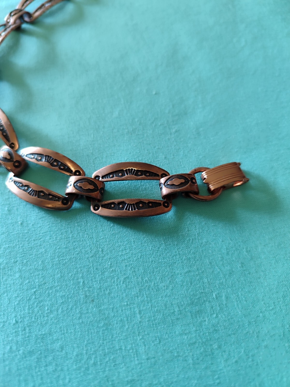 Stamped Pure Copper Southwest Native American Bracelet Panel Link 8"