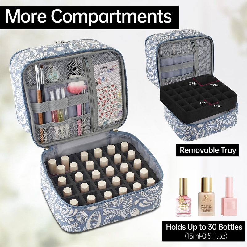 Nail Polish Organizer Case Double-Layer Nail Tools Storage, Holds 27