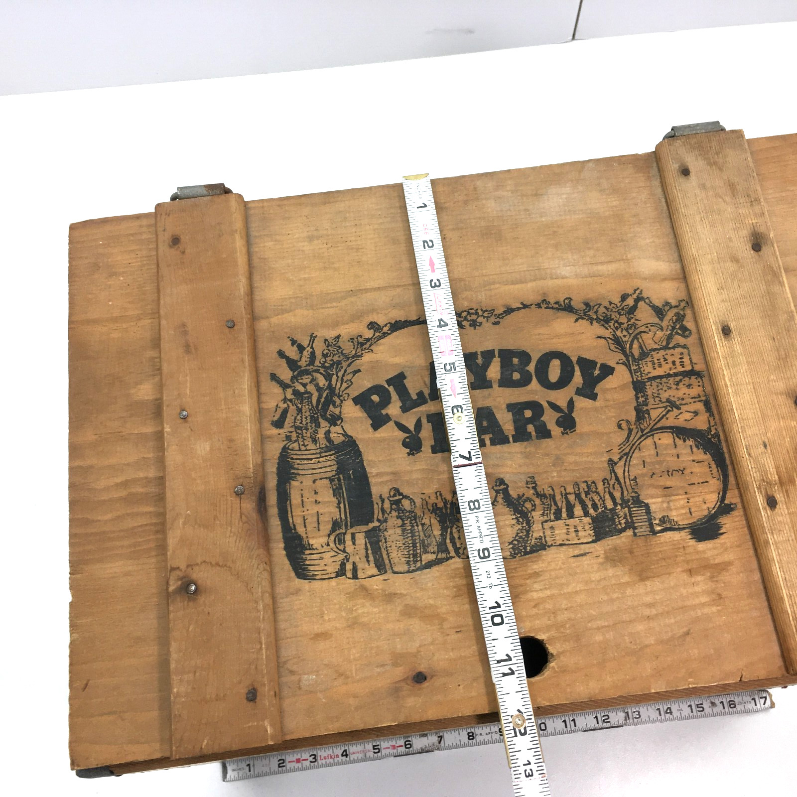 Vintage Playboy Club Wooden Bar Box Wine Crate with Hinged Lid