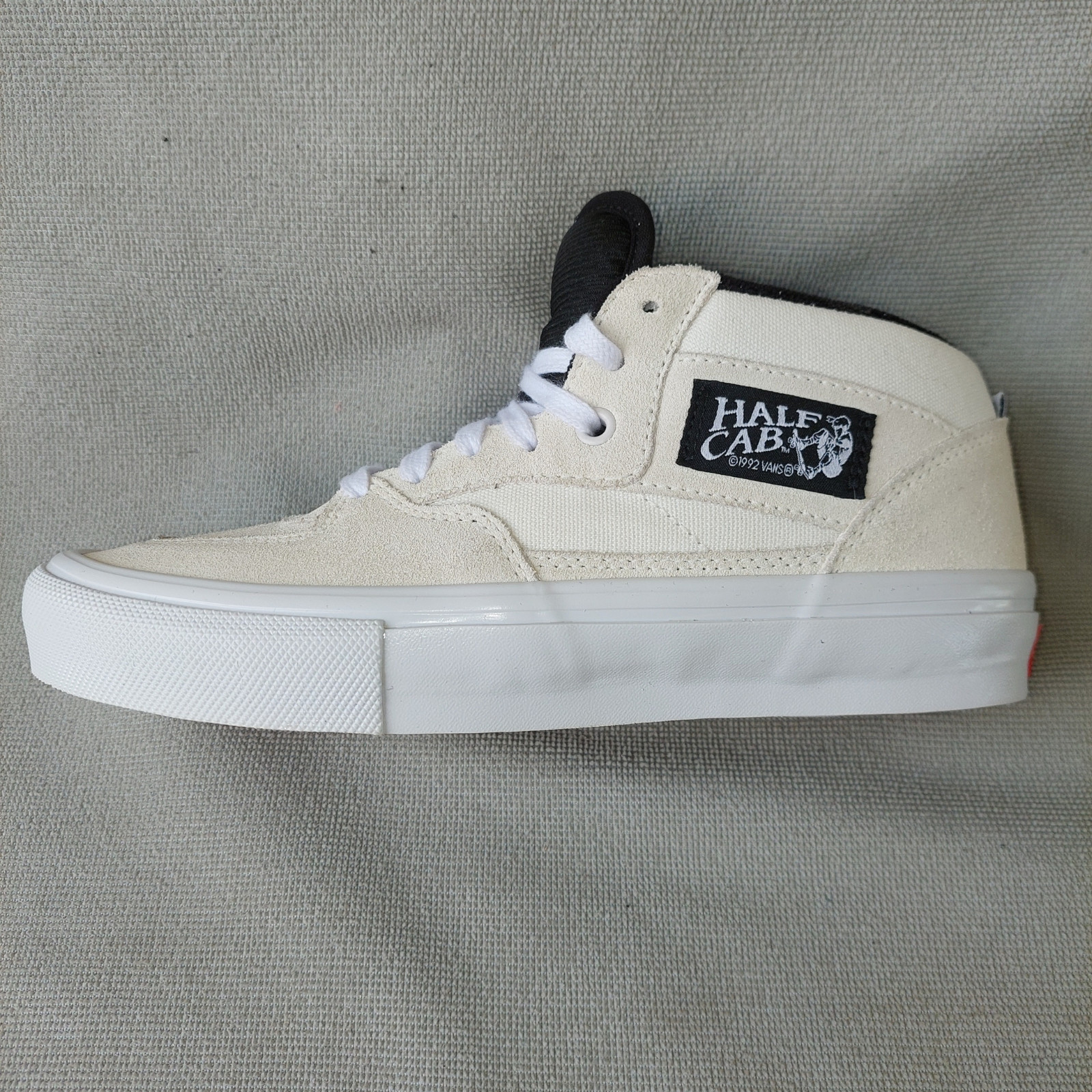 Brand New version, featuring a durable Canvas and Suede upper, is built to take more hits, hold its shape longer, and keep your feet fresher when the lines stretch on. From flatground to stair sets, it’s the evolution of a classic, designed to take whatever you throw at it.This model features the revolutionary WaffleCup™ construction, which perfectly combines the cupsole's durability and support with the vulcanized board feel and flexibility. The fit is locked-in, thanks to the LUXLINER™ inner for a seamless, breathable feel, and the DuraCap rubber underlay placed in key areas protects against griptape wear.Key Features:Brand: VansStyle: Iconic Signature Mid-Top Skate ShoeModel: Half Cab WaffleCup™Colorway: CreamSize: Men’s 6.5Upper Materials: Durable Canvas and SuedeConstruction: WaffleCup™ (Cupsole support + vulcanized board feel)Cushioning: PopCush™ footbeds for superior impact protectionGrip: SickStick™ rubber outsole (Vans' stickiest compound)Fit: LUXLINER™ inner for breathable, seamless fitDurability: DuraCap rubber underlay and molded heel counterCondition: