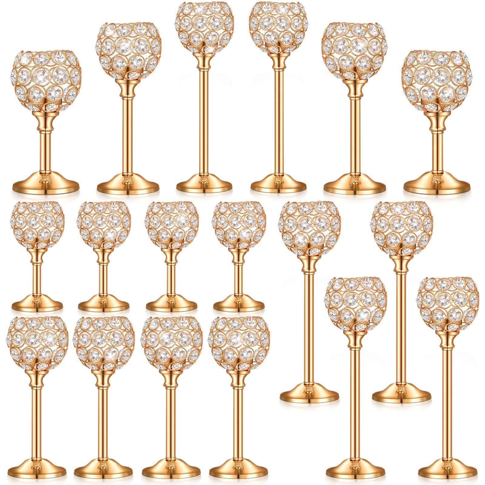 18 Pieces Crystal Candle Holders Bulk Candle Stick Holder Centerpieces For Table