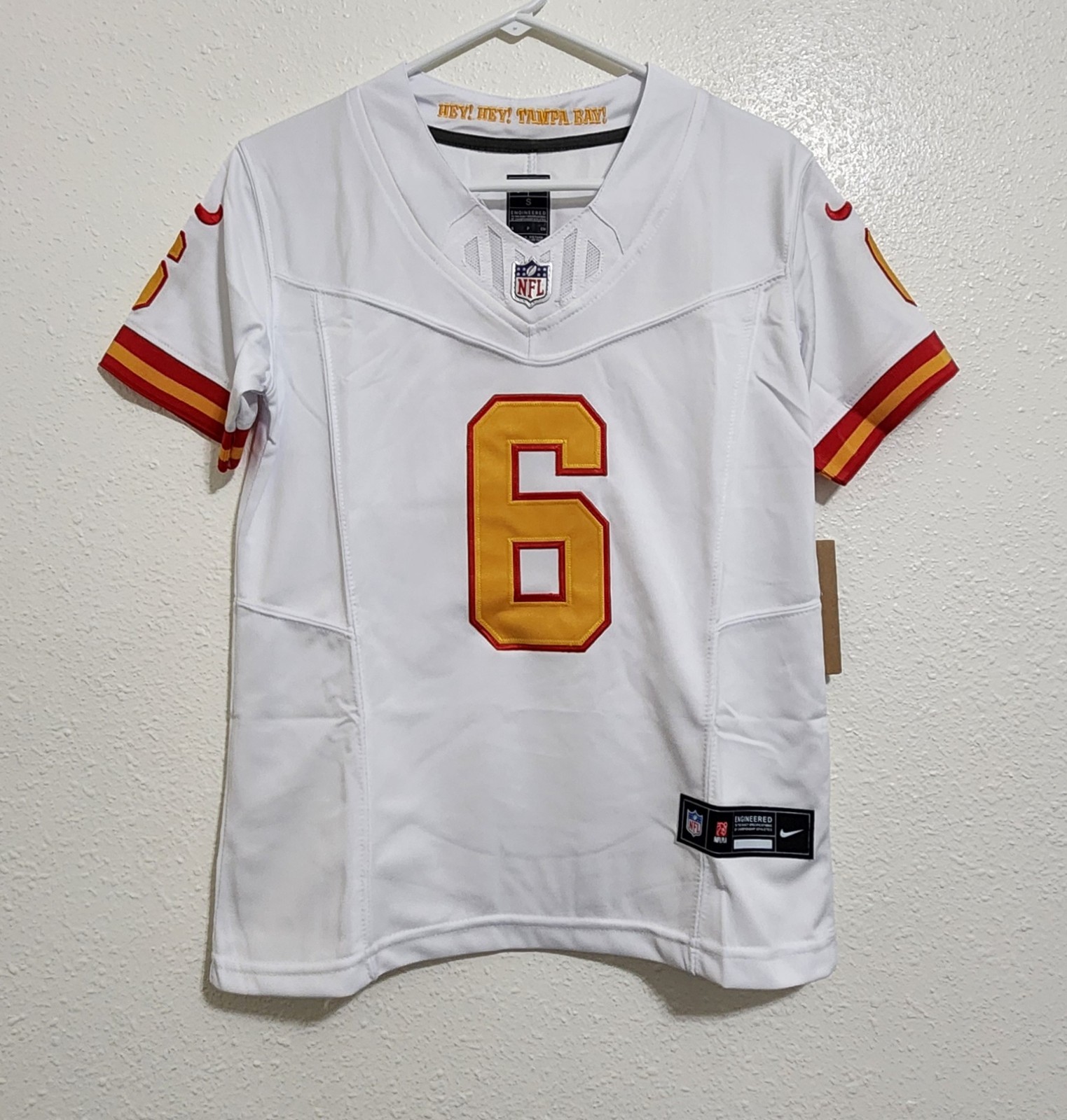 This Tampa Bay Buccaneers Baker Mayfield #6 youth jersey is size Small (8). Condition is pre-owned; check the listing for details on exact wear, tags, and any noted flaws. It’s a good option for young fans looking for team apparel for game day, school spirit, or collecting. Free shipping is included, so the total cost is easier to plan. Check the listing for details on materials, measurements, and any additional included information.